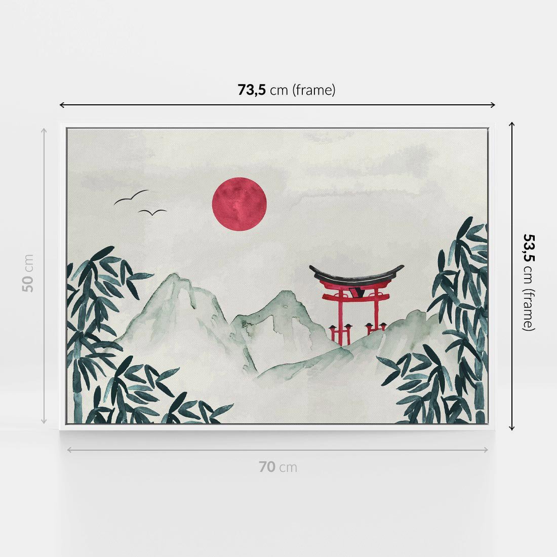 Obraz w ramie 70x50 - Słońce nad Górami - japoński krajobraz, góry - rama biała