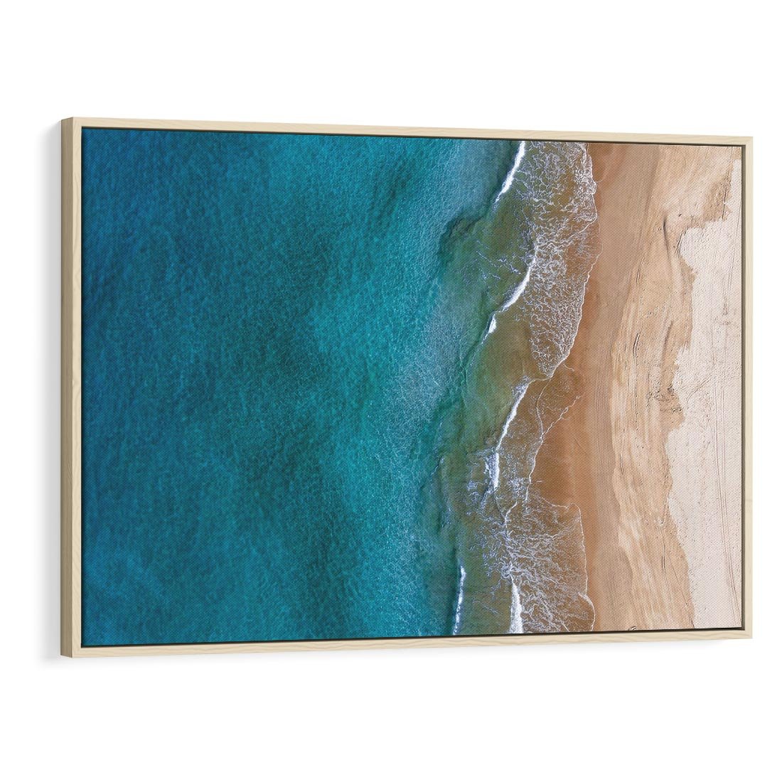 Ta kompozycja przedstawia piękną plażę i spokojne morze. Jej stonowane kolory i delikatne kontrasty tworzą atmosferę harmonii i odpoczynku. To idealny wybór dla osób pragnących wprowadzić do swojego wnętrza nutę relaksu i wakacyjnego klimatu.