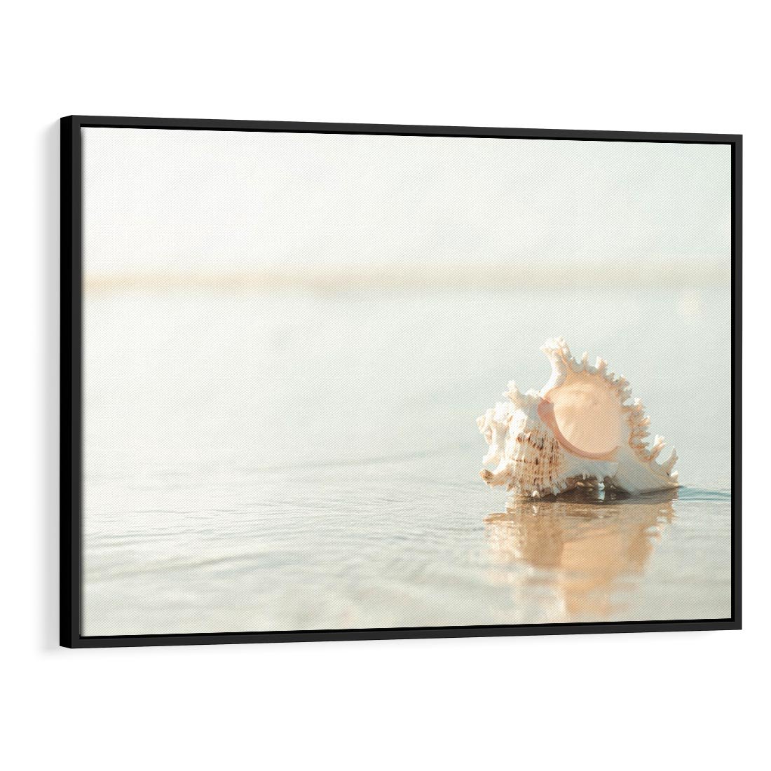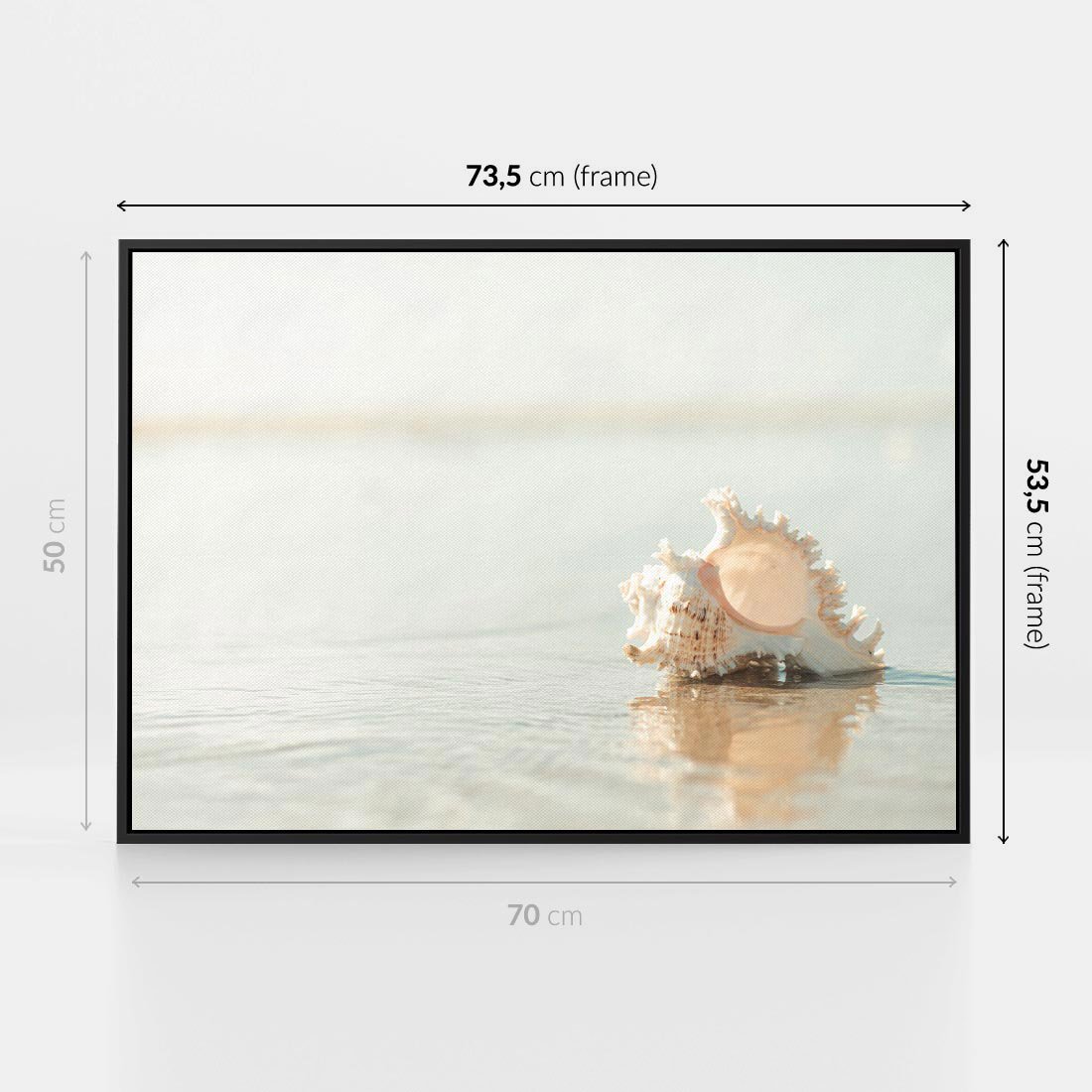 Obraz w ramie 70x50 - Spokój Plaży - fotografia, biała muszla na plaży - rama czarna
