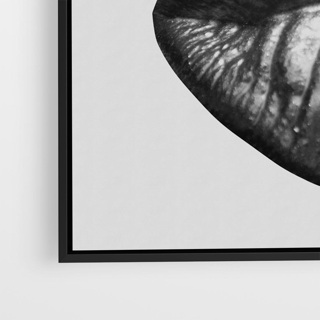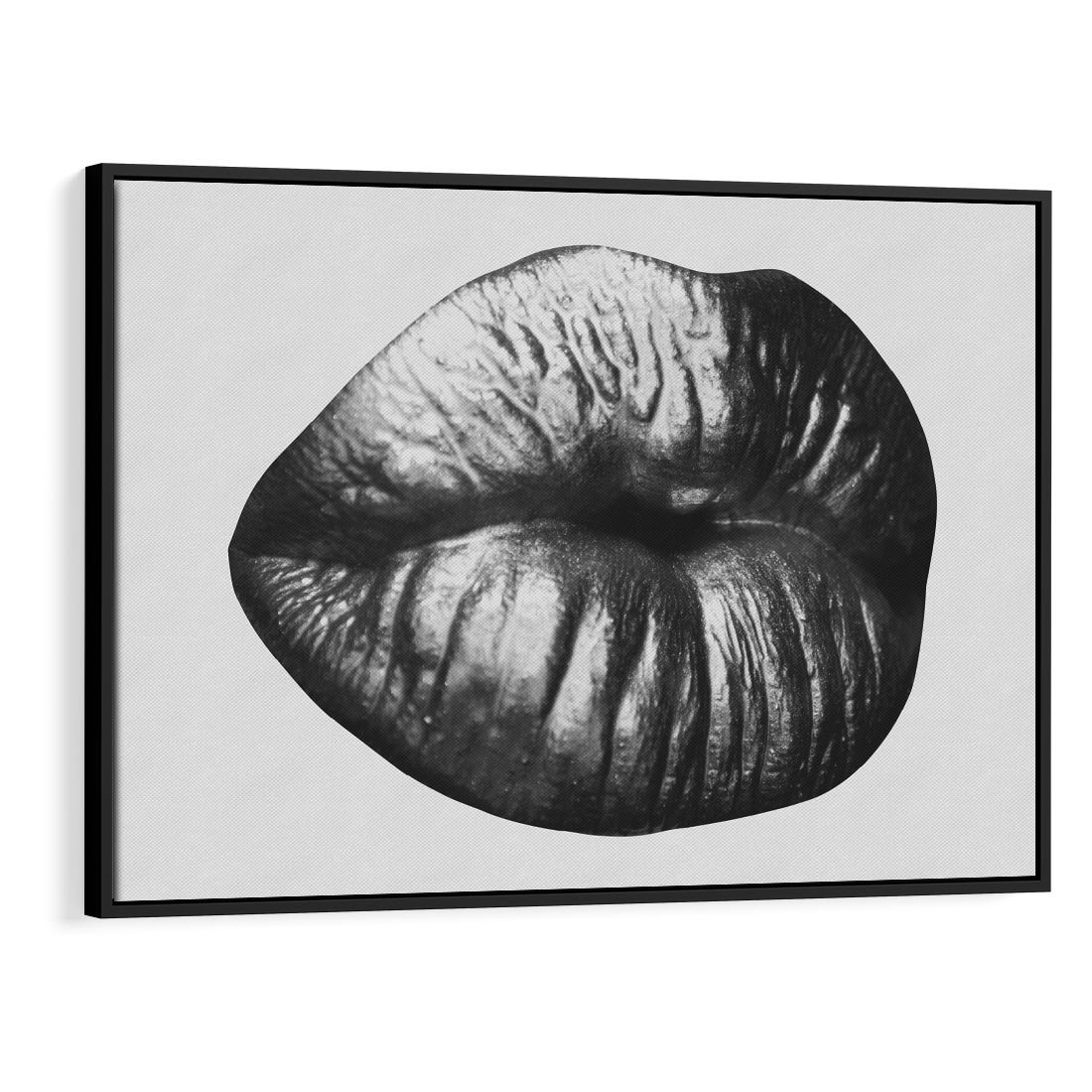 Obraz w ramie 70x50 - Srebrna Moc Wyrazu - srebrne usta, zbliżenie - rama czarna