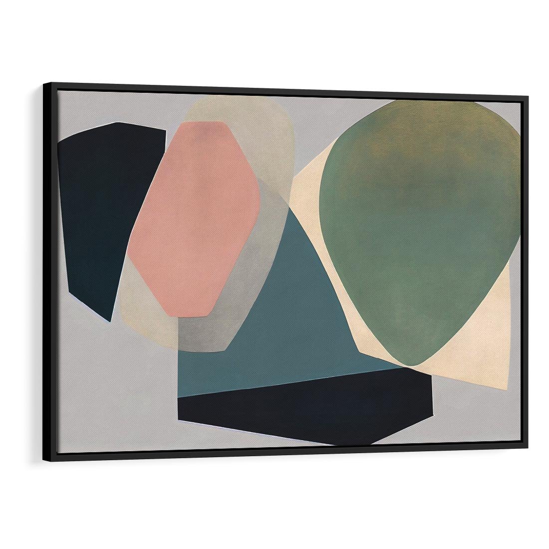 To dzieło przedstawia abstrakcyjne plamy i kształty o pastelowych kolorach, które kontrastują z delikatnym szarym tłem. To odsłonięcie wyobraźni, gdzie formy i kolory tworzą subtelną opowieść na płótnie. To zaproszenie do kontemplacji nad harmonią i zróżnicowaniem abstrakcyjnych elementów, które wprowadzają nas w świat refleksji i interpretacji.