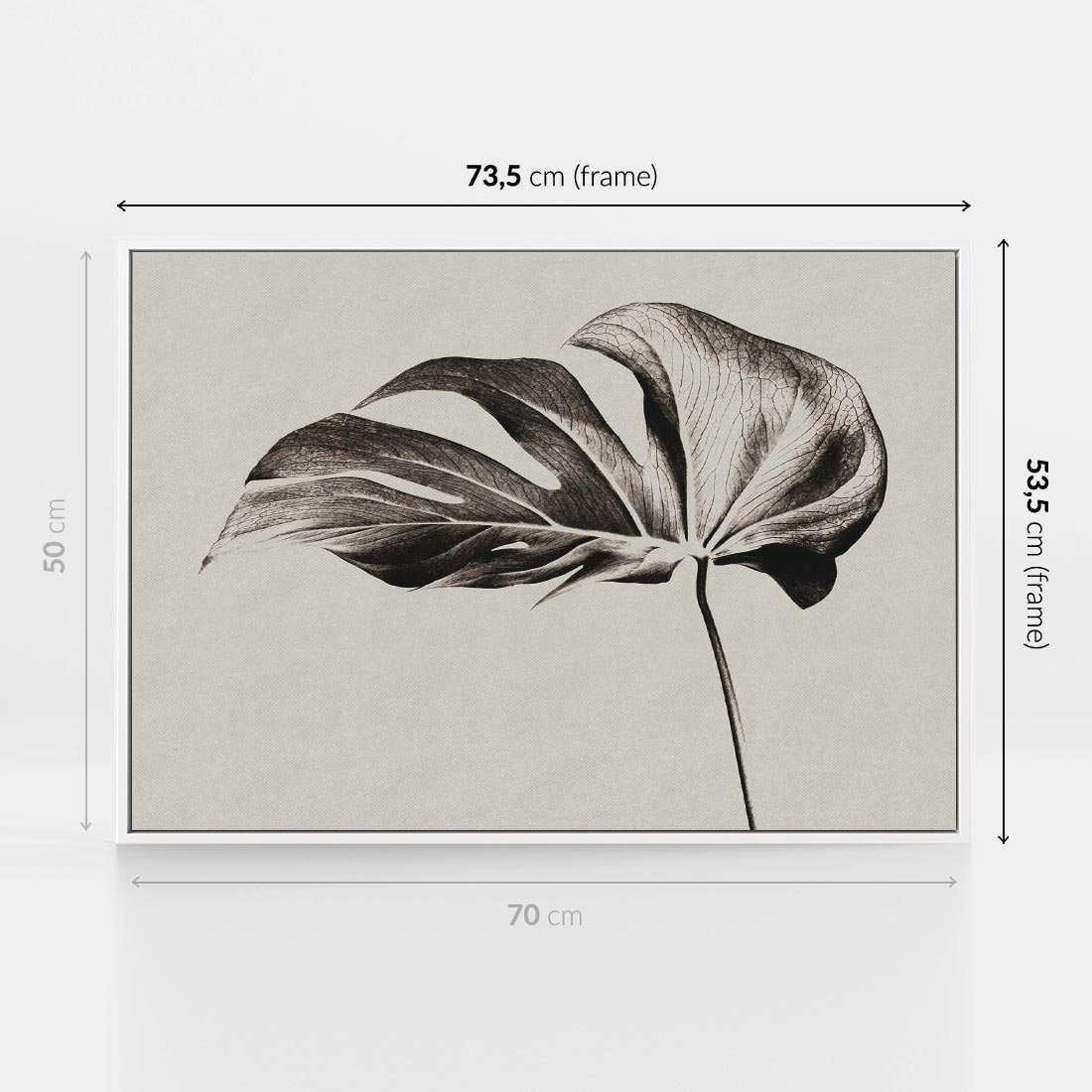Obraz w ramie 70x50 - Szepczący Liść - szkic, czarno biały - rama biała