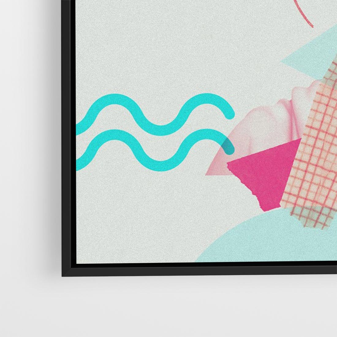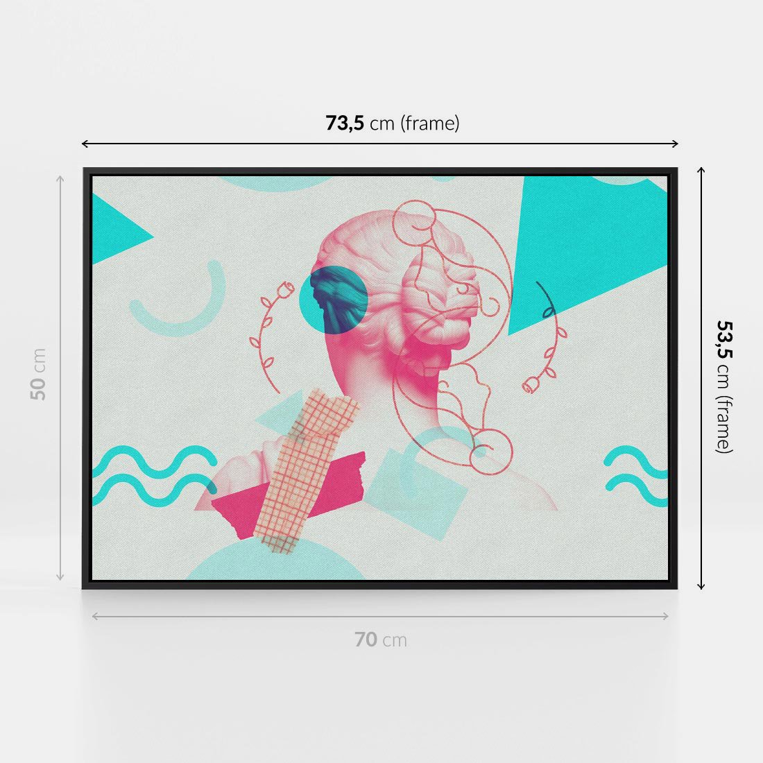 Ten nowoczesny kolaż łączy antyczną rzeźbę kobiety z elementami sztuki współczesnej. W delikatnych odcieniach różowego ukazuje piękno ludzkiej formy, przenosząc je w nowoczesny kontekst. To unikalne dzieło sztuki przyciąga wzrok i inspiruje do refleksji nad pięknem i ewolucją sztuki przez wieki.