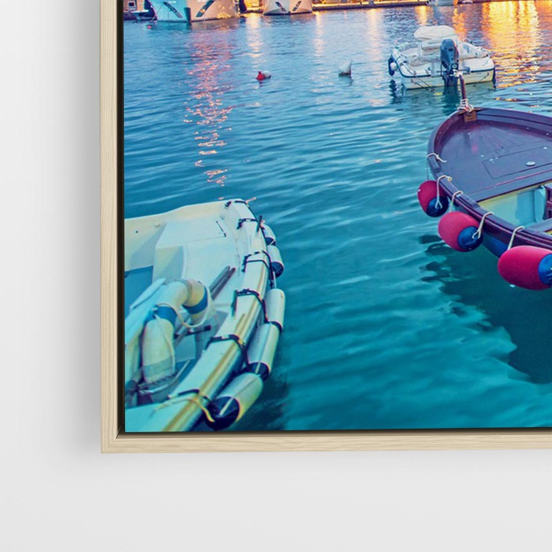 To malowniczy pejzaż przedstawiający nadmorskie miasto ożywione bogatą paletą barw. Budynki w jaskrawych kolorach zdobią brzeg, a port tętni życiem z kolorowymi łodziami. Wieczorne latarnie rozświetlają to idylliczne miejsce, nadając mu romantyczny nastrój. Ten obraz przenosi widza w magiczny krajobraz pełen kolorów i uroku nadmorskiego miasteczka. Idealny dla miłośników podróży i pięknych widoków.