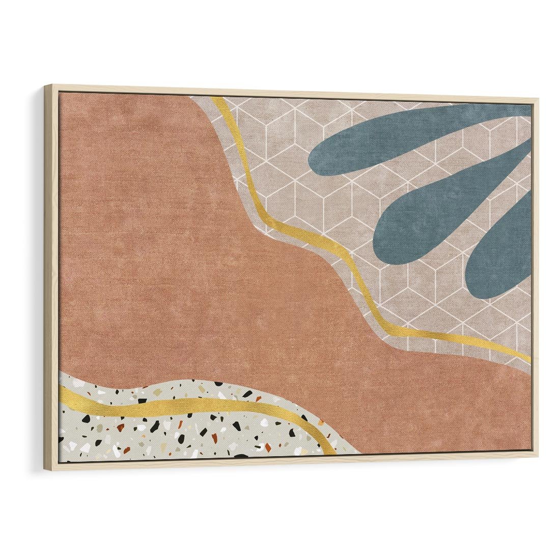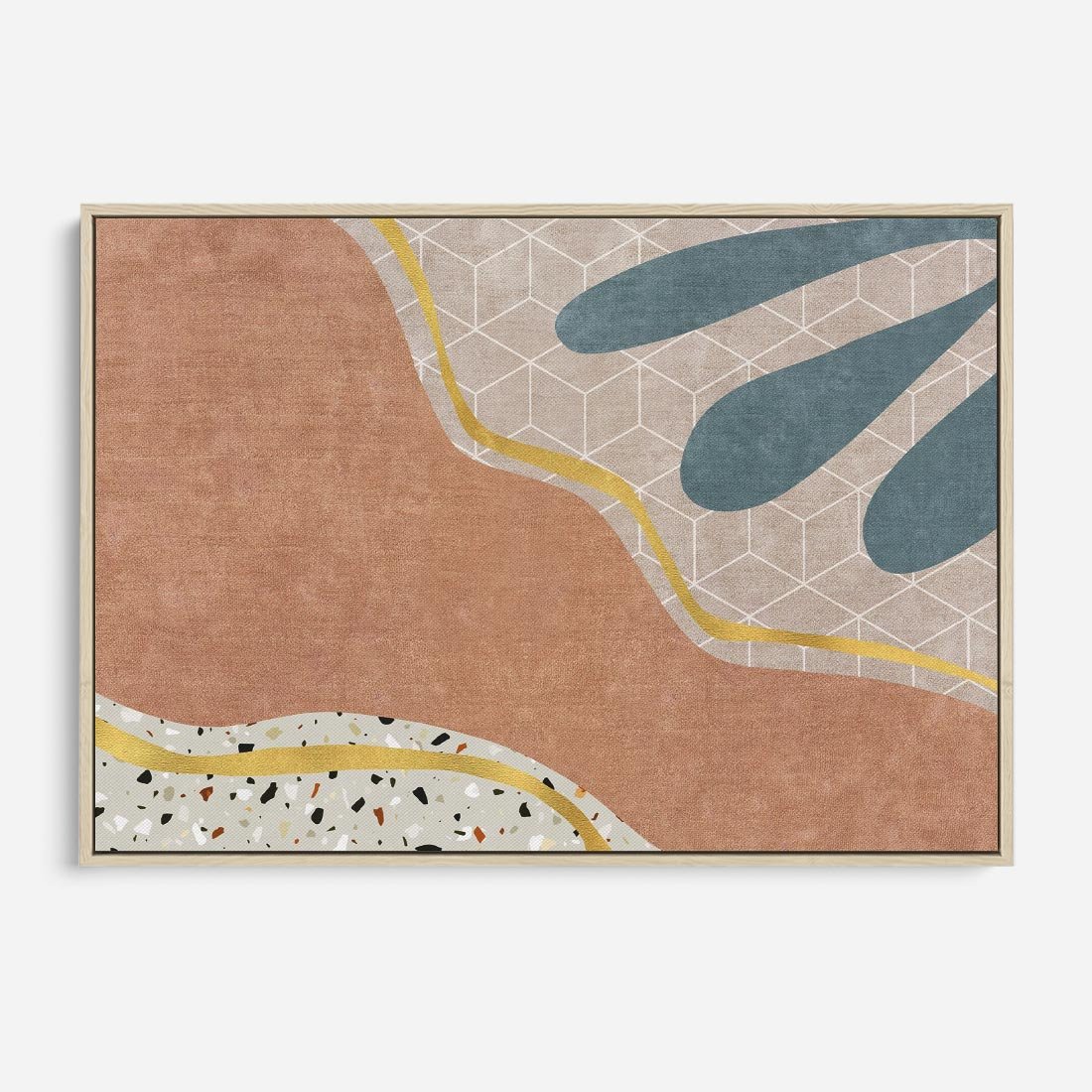 Zapraszamy do odkrycia wyjątkowego obrazu z abstrakcyjnymi formami, wzbogaconymi o rozlane farby, tekstury lastryka i marmuru. Złote linie dodają elegancji i wyrafinowania. To arcydzieło sztuki stworzone dla miłośników unikalnych kompozycji, pragnących wnieść sztukę do swoich wnętrz. Idealny wybór dla osób ceniących nowoczesność.