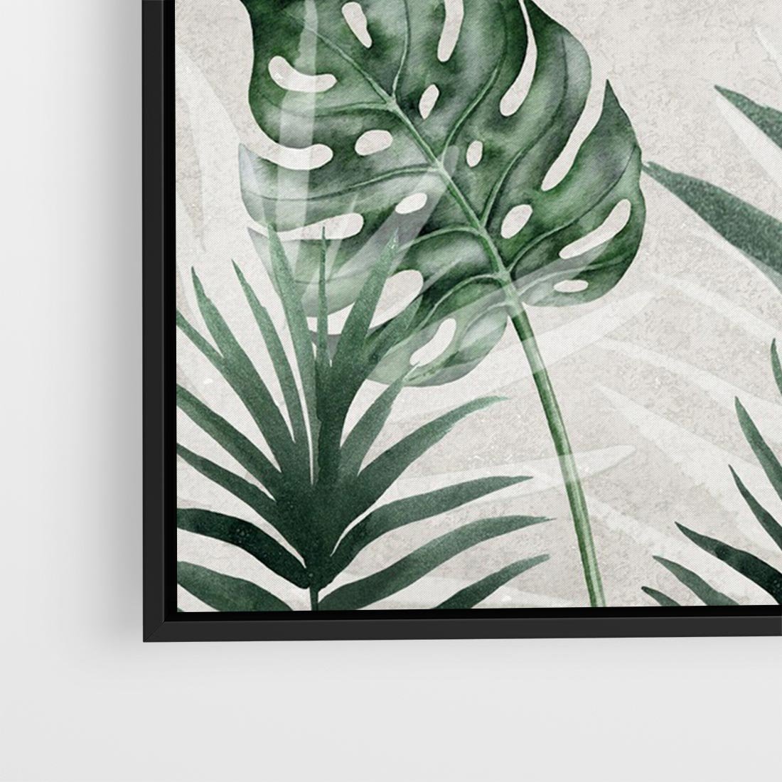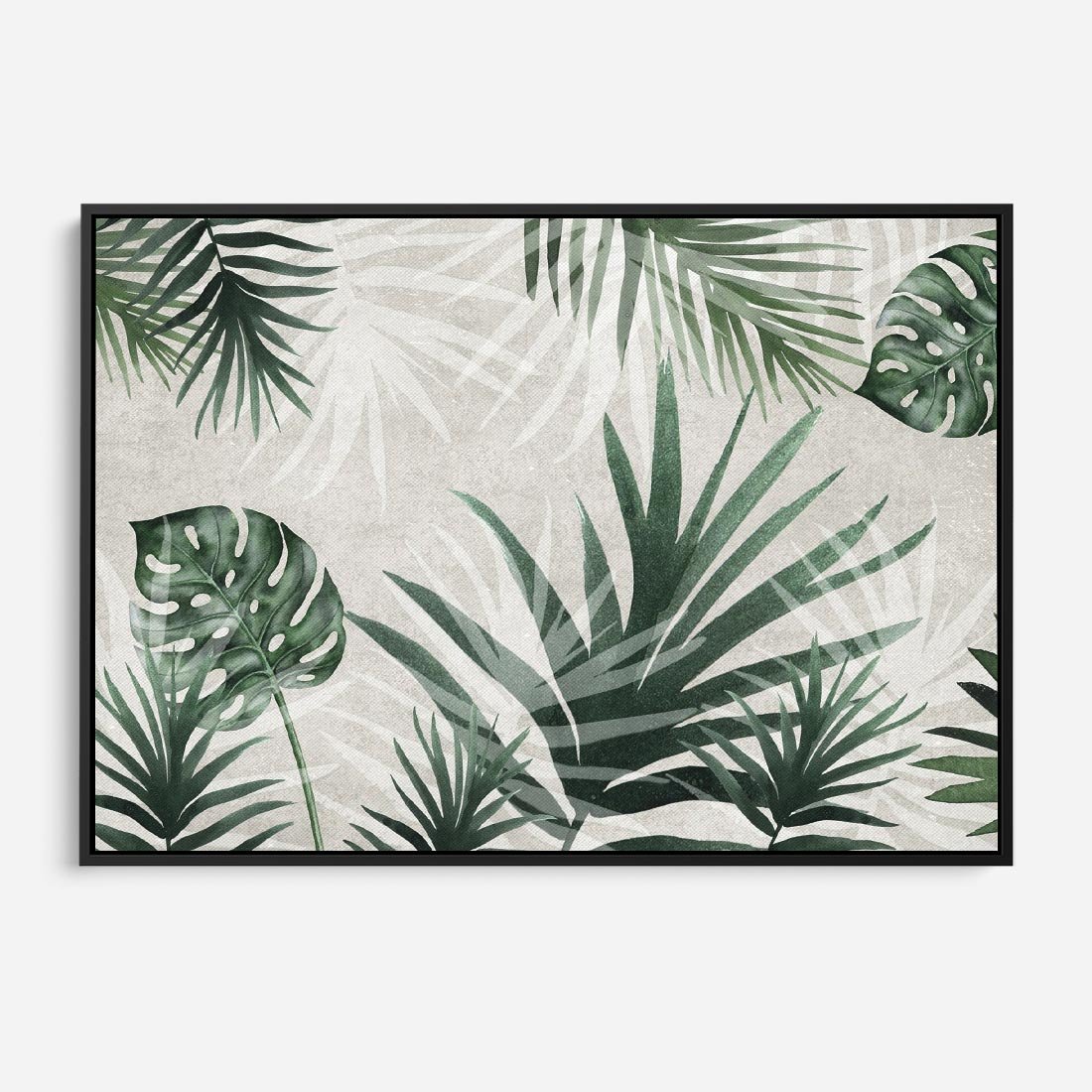 Obraz w ramie 70x50 - Tropikalne Akwarele - tropikalne liście, akwarela - rama czarna