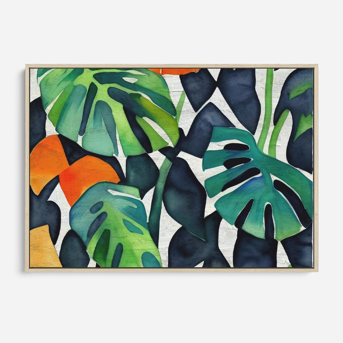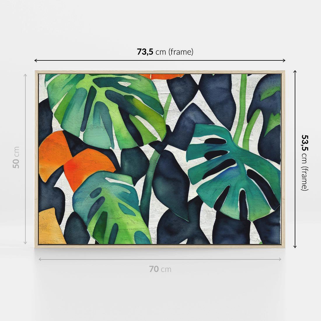 Obraz w ramie 70x50 - Tropikalne Pragnienia - akwarela, liście tropikalne - rama drewno