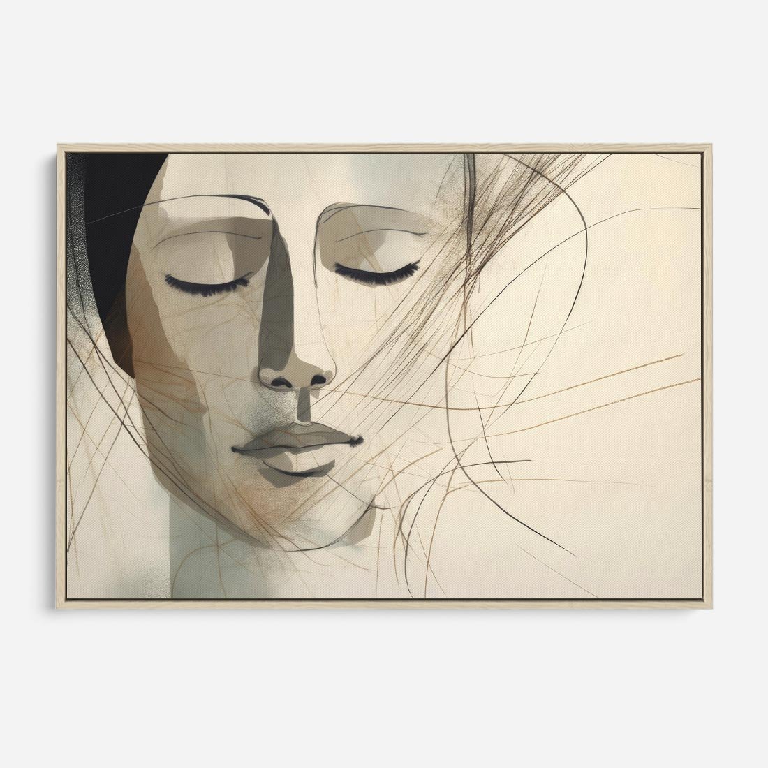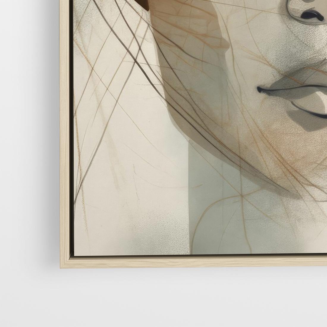 Ten obraz przedstawia twarz kobiety z zamkniętymi oczami wykonaną techniką akwareli. Szkic w neutralnych beżowych kolorach dodaje kompozycji delikatności i subtelnego piękna. Obraz emanuje spokojem i elegancją, przenosząc widza w refleksyjny nastrój. To artystyczne dzieło doskonale pasuje do nowoczesnych wnętrz, nadając im wyjątkowego charakteru.