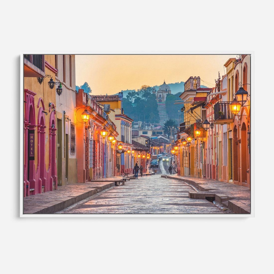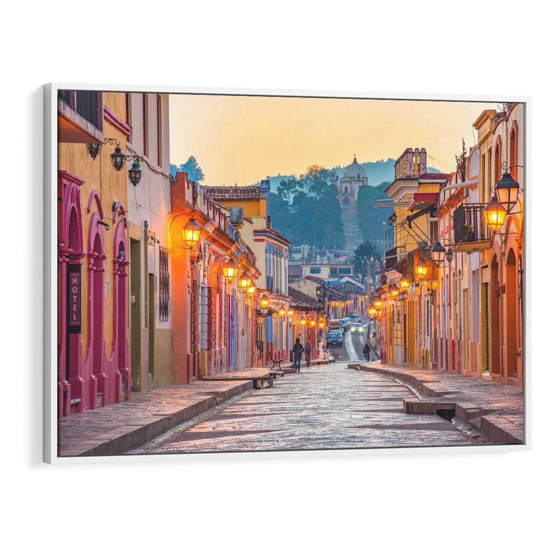 Obraz w ramie 70x50 - W stronę marzycielskich horyzontów - włoska uliczka, wieczór - rama biała