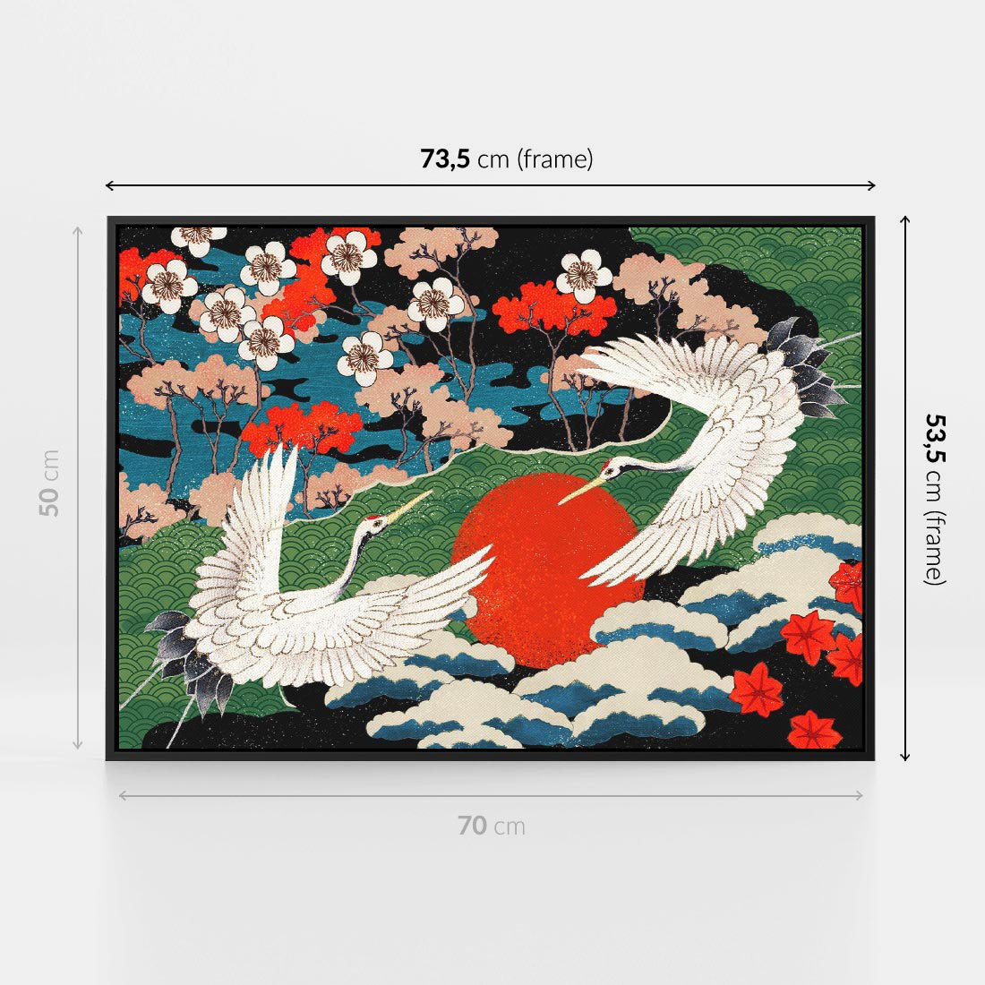Podziwiaj wyjątkowy obraz inspirowany sztuką japońską, gdzie wyraziste kolory ożywiają motywy żurawi i kwitnącej wiśni. To dzieło sztuki stworzone dla miłośników delikatnej estetyki i symboli natury. Doskonały akcent dla tych, którzy pragną wprowadzić harmonię, piękno przyrody oraz ducha Japonii do swoich wnętrz.