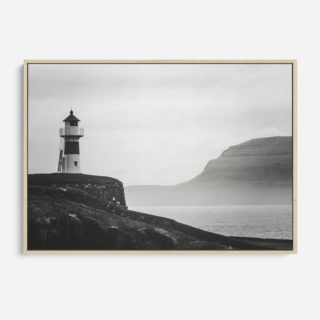 Obraz w ramie 70x50 - Wiszące na horyzoncie wspomnienia - latarnia morska, klif - rama drewno