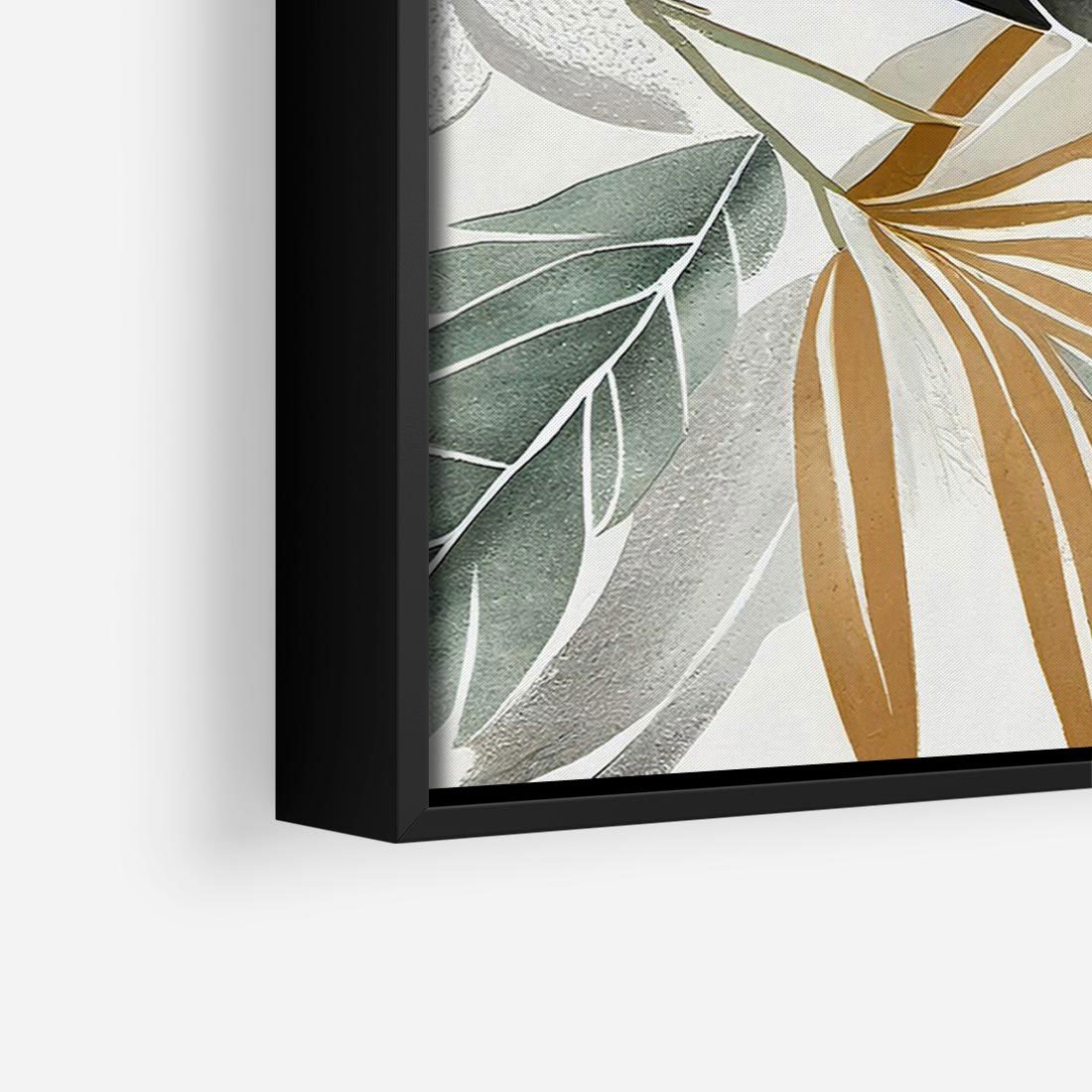 Obraz w ramie 70x50 - Współbrzmienie wewnętrznego ja - kompozycja z tropikalnych liści, stonowane kolory - rama czarna