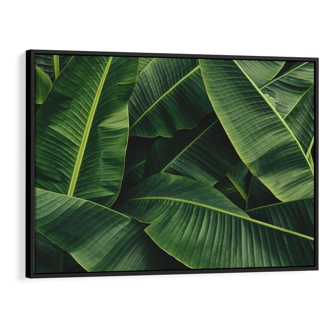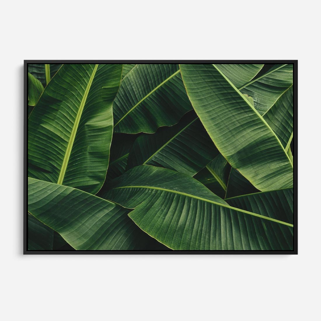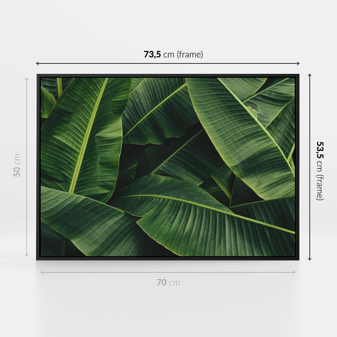 Obraz w ramie 70x50 - Zaklęta roślinna ekspresja - liście bananowca, gęsto ułożone - rama czarna