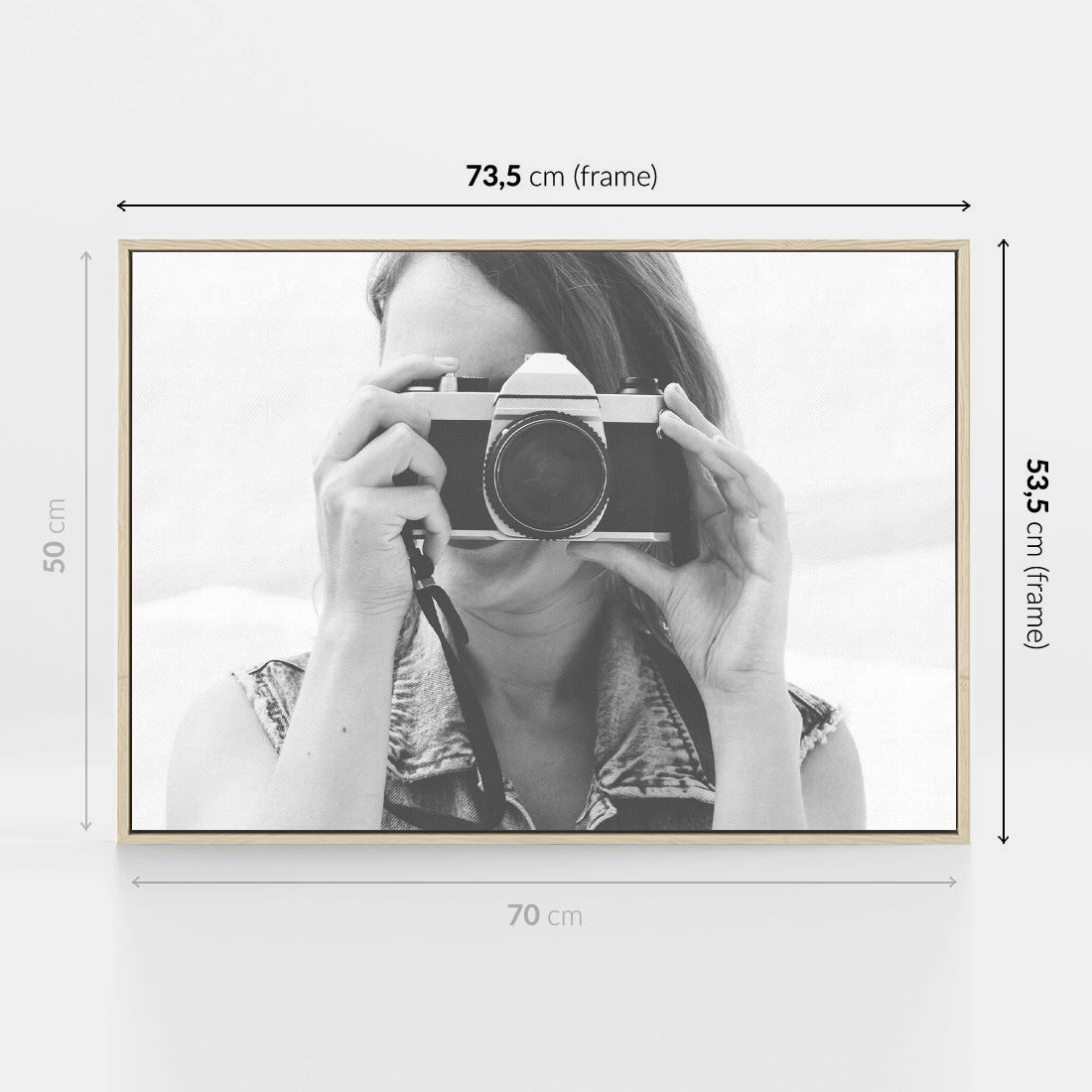 Obraz w ramie 70x50 - Zrób mi Zdjęcie - fotografia, kobieta z aparatem - rama drewno