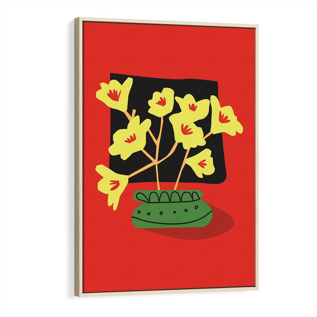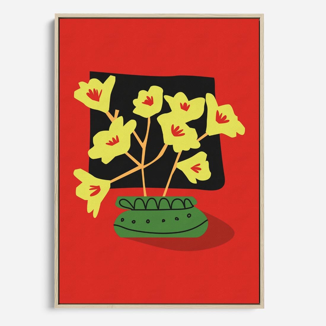 Ten nowoczesny plakat ukazuje abstrakcyjne kwiaty na głębokim czerwonym tle. Sztuka ta wprowadza pasję i wyrazistość do przestrzeni, tworząc zmysłową kompozycję, która przyciąga uwagę i budzi emocje.