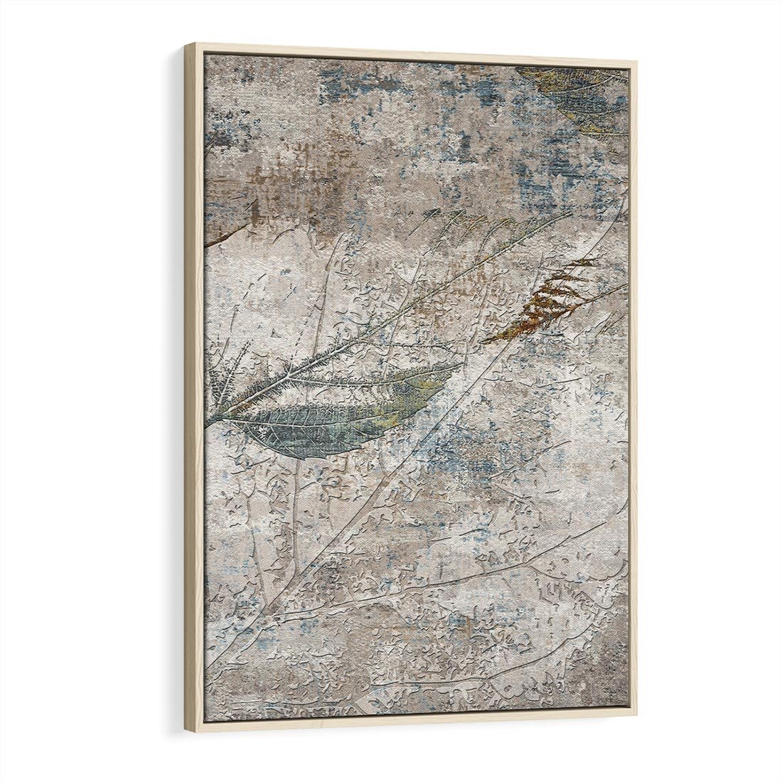 Obraz w ramie 80x120 - Betonowe Wspomnienia Liści - odciski w betonie, odbitki - rama drewno