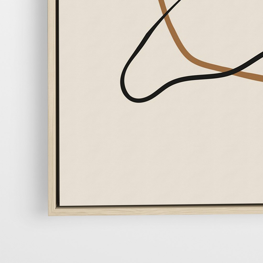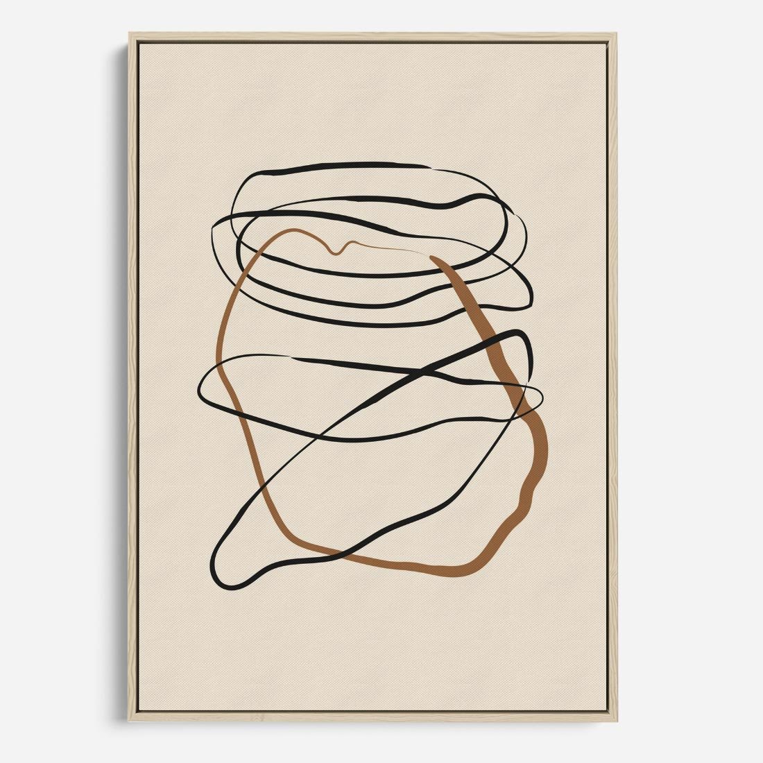Ten plakat przedstawia abstrakcyjne, zaplątane linie na spokojnym beżowym tle, które tworzą minimalistyczną kompozycję. Sztuka ta eksploruje złożoność relacji między liniami i przestrzenią, tworząc dynamiczny i zarazem harmonijny obraz, który zachęca do refleksji i stanowi subtelną ozdobę dla Twojego wnętrza.