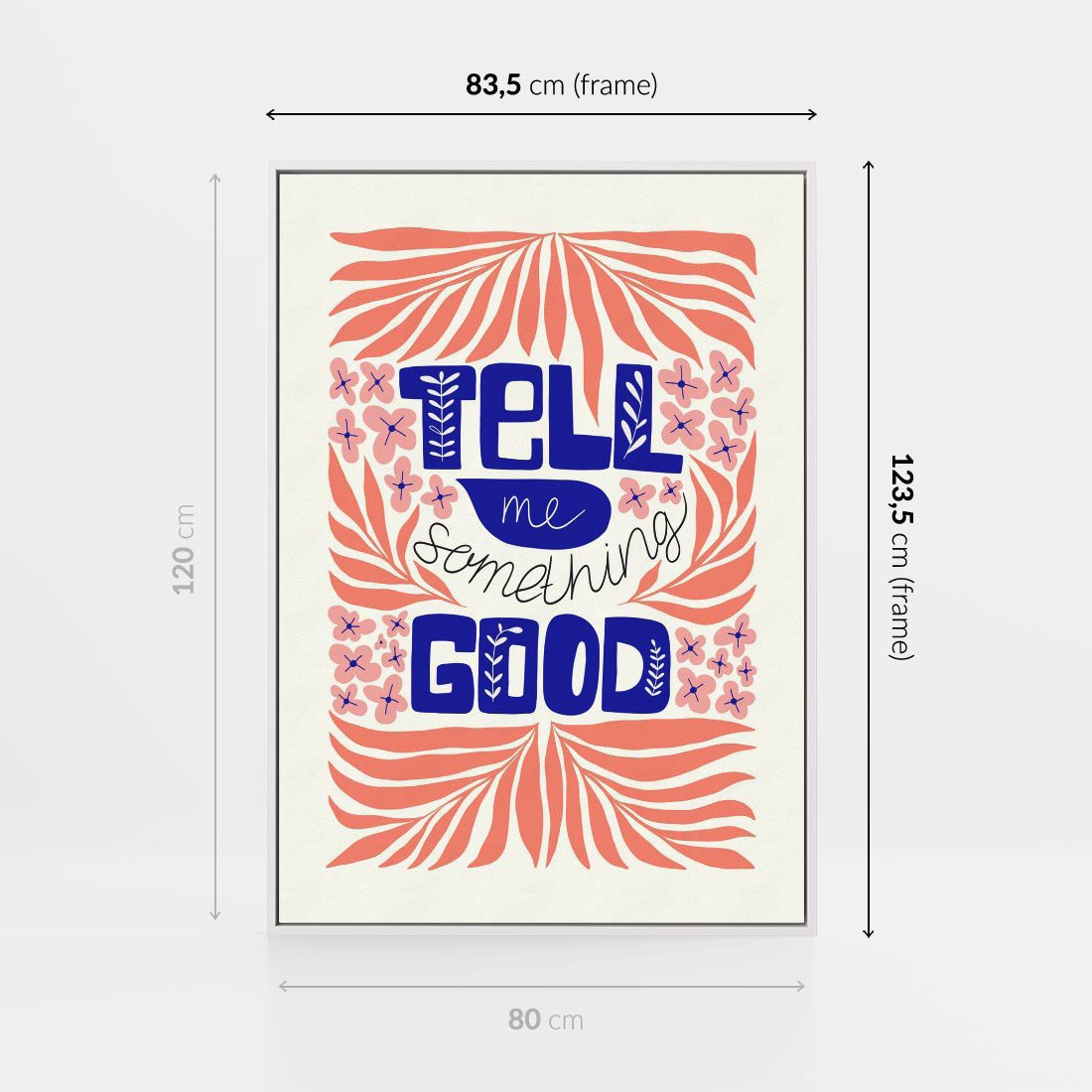 Obraz w ramie 80x120 - Bezgraniczne Formy - nowoczesna typografia, liście - rama biała