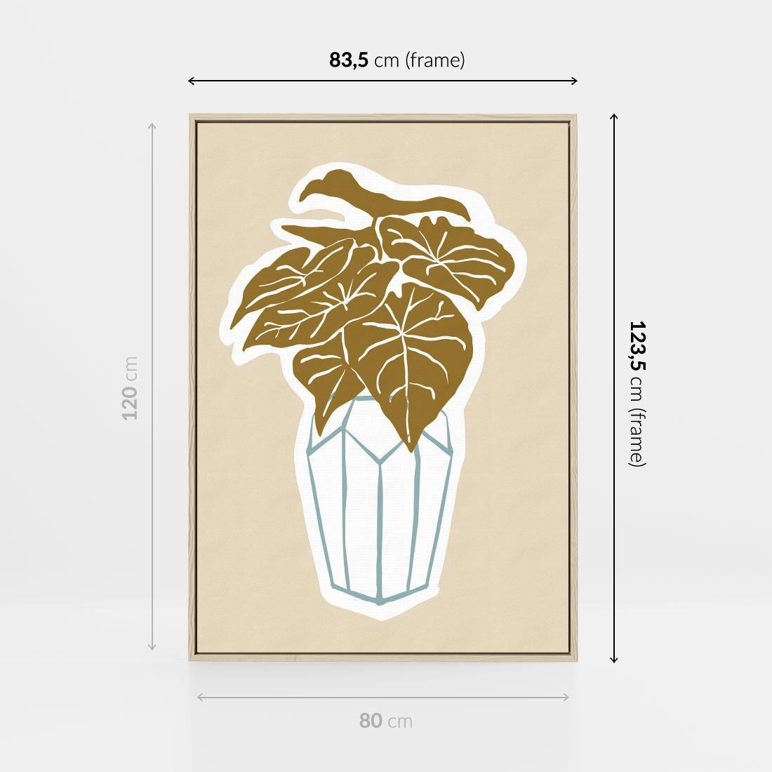 Ta nowoczesna kompozycja przenosi boho styl do Twojego salonu i jadalni, prezentując liście monstery w wazonie w delikatnych beżowych odcieniach. Sztuka ta tworzy spójny, ale zarazem zmysłowy akcent, dodając wyjątkową elegancję i urok do Twojej przestrzeni.