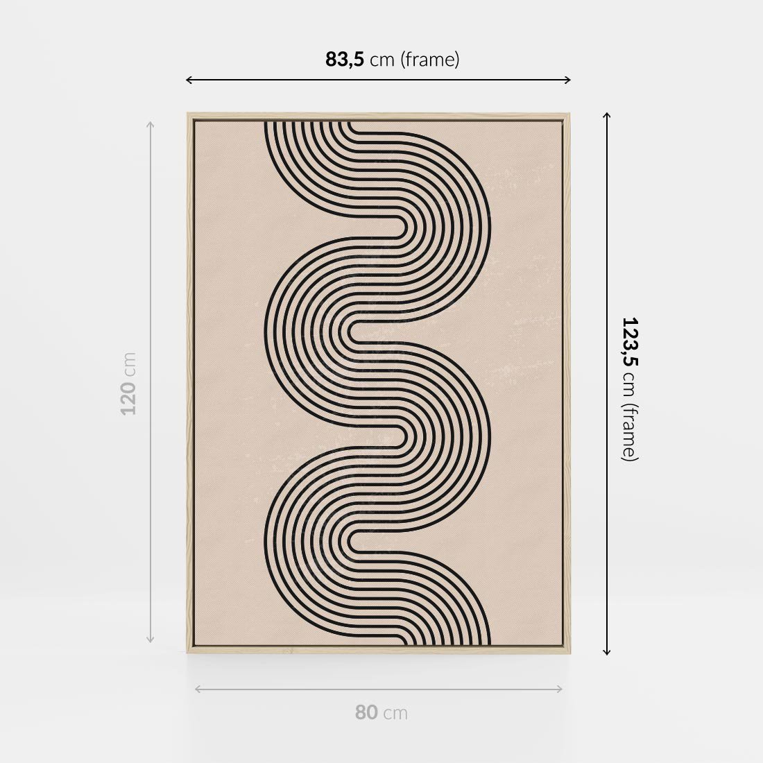 Nasz plakat to abstrakcyjne linie w geometrycznym układzie, wykonane z czarnych linii na spokojnym beżowym tle. To nowoczesne dzieło sztuki wprowadza do Twojej przestrzeni dynamiczny wzór i wyrafinowany minimalizm, doskonale pasując do nowoczesnych wnętrz.