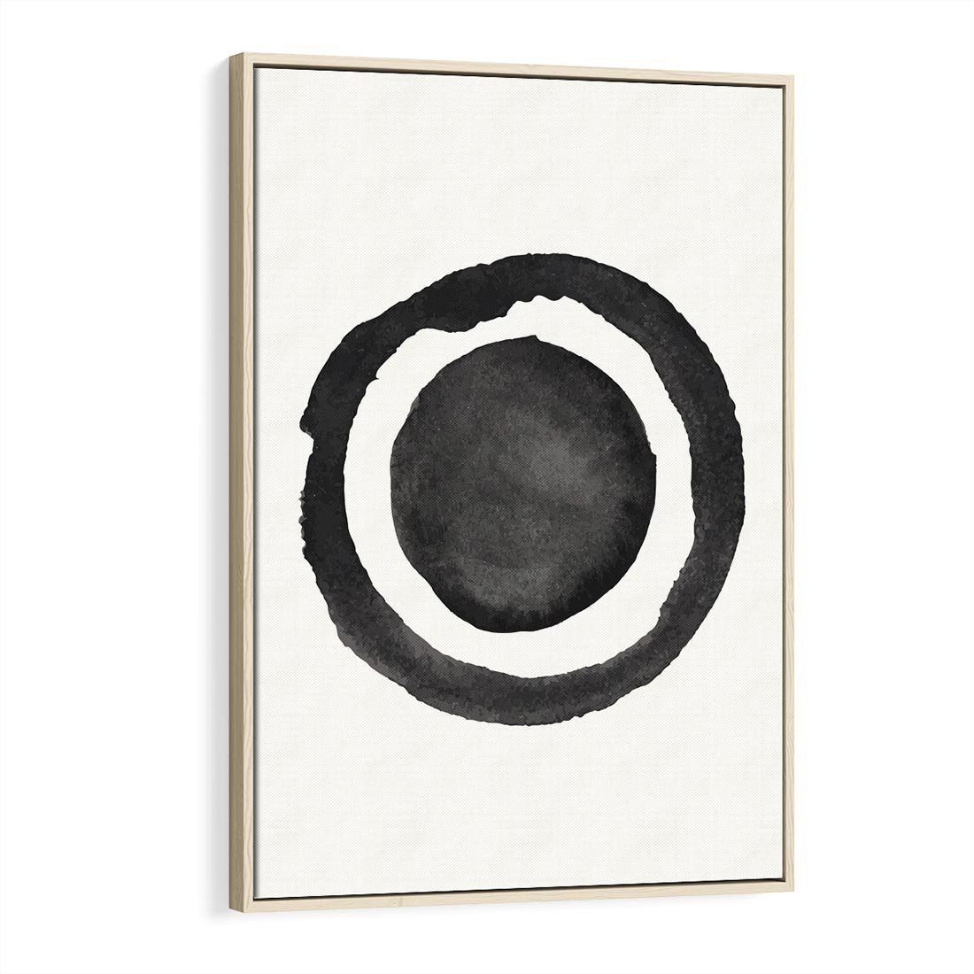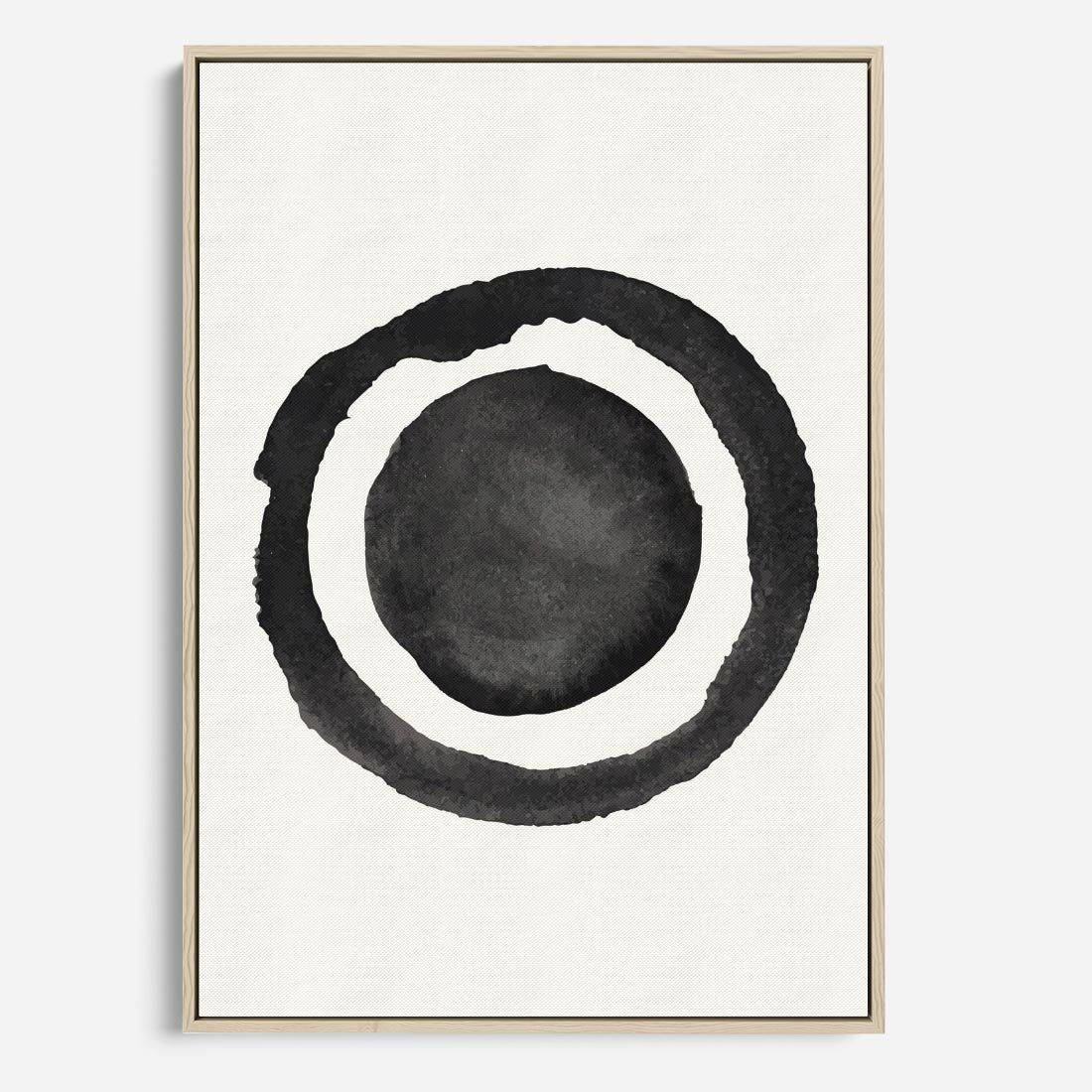 Ten wyjątkowy obraz łączy abstrakcyjne plamy i okręgi w delikatnych odcieniach akwareli. Biało-czarna kolorystyka niesie ze sobą minimalistyczną estetykę, tworząc harmonijną kompozycję.