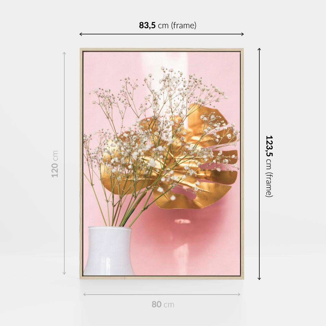 Obraz w ramie 80x120 - Blask Natury - złote, liście - rama drewno