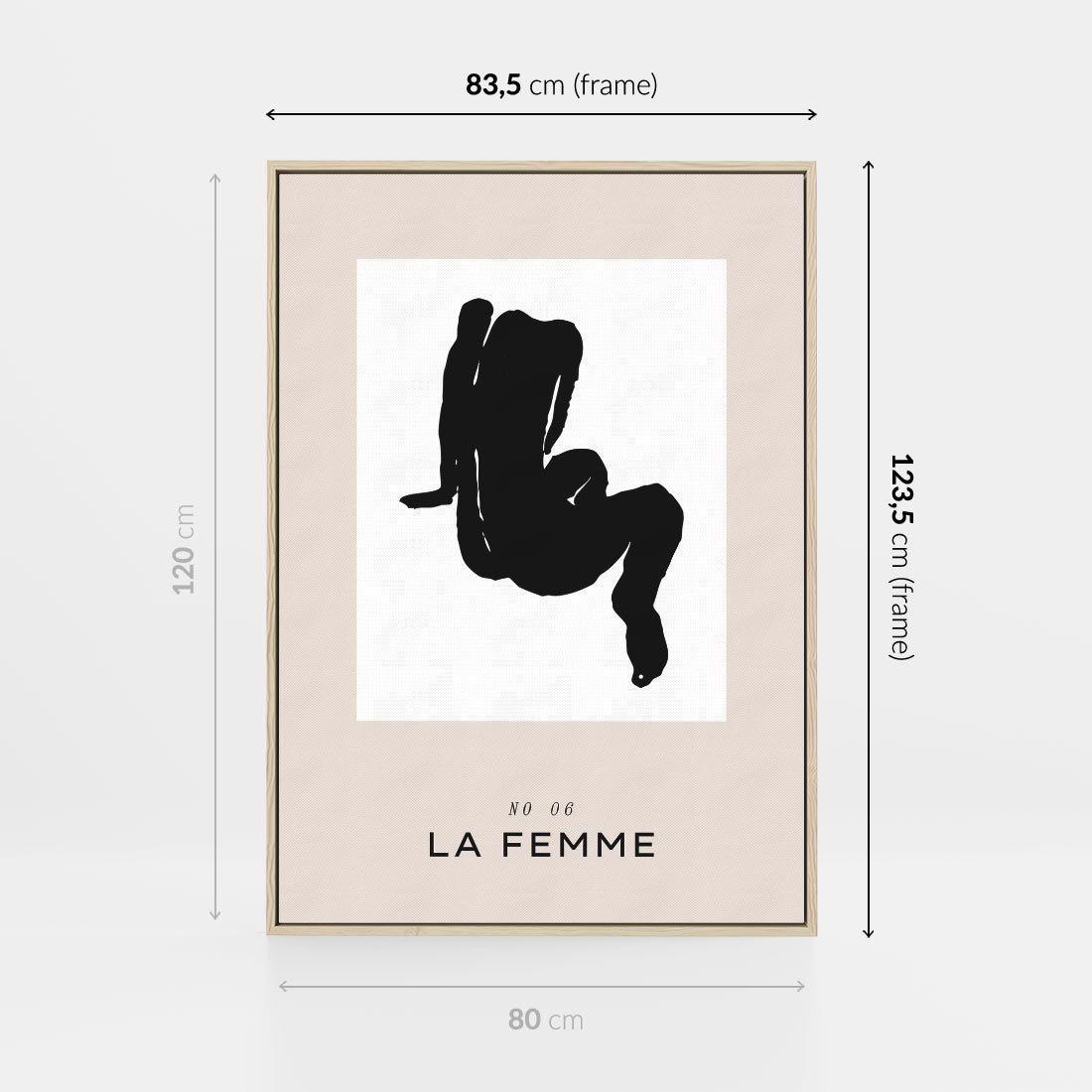 To abstrakcyjne dzieło sztuki przedstawia siedzącą postać w wyrazistych odcieniach czerni, bieli i beżu. Poprzez minimalistyczny zabieg kolorystyczny, plakat emanuje spokojem i elegancją. Abstrakcyjna forma dodaje głębi i intrygującego wymiaru, zachęcając widza do interpretacji i odkrywania ukrytych znaczeń. Przywołuje piękno ludzkiej sylwetki w kontekście abstrakcyjnej sztuki.