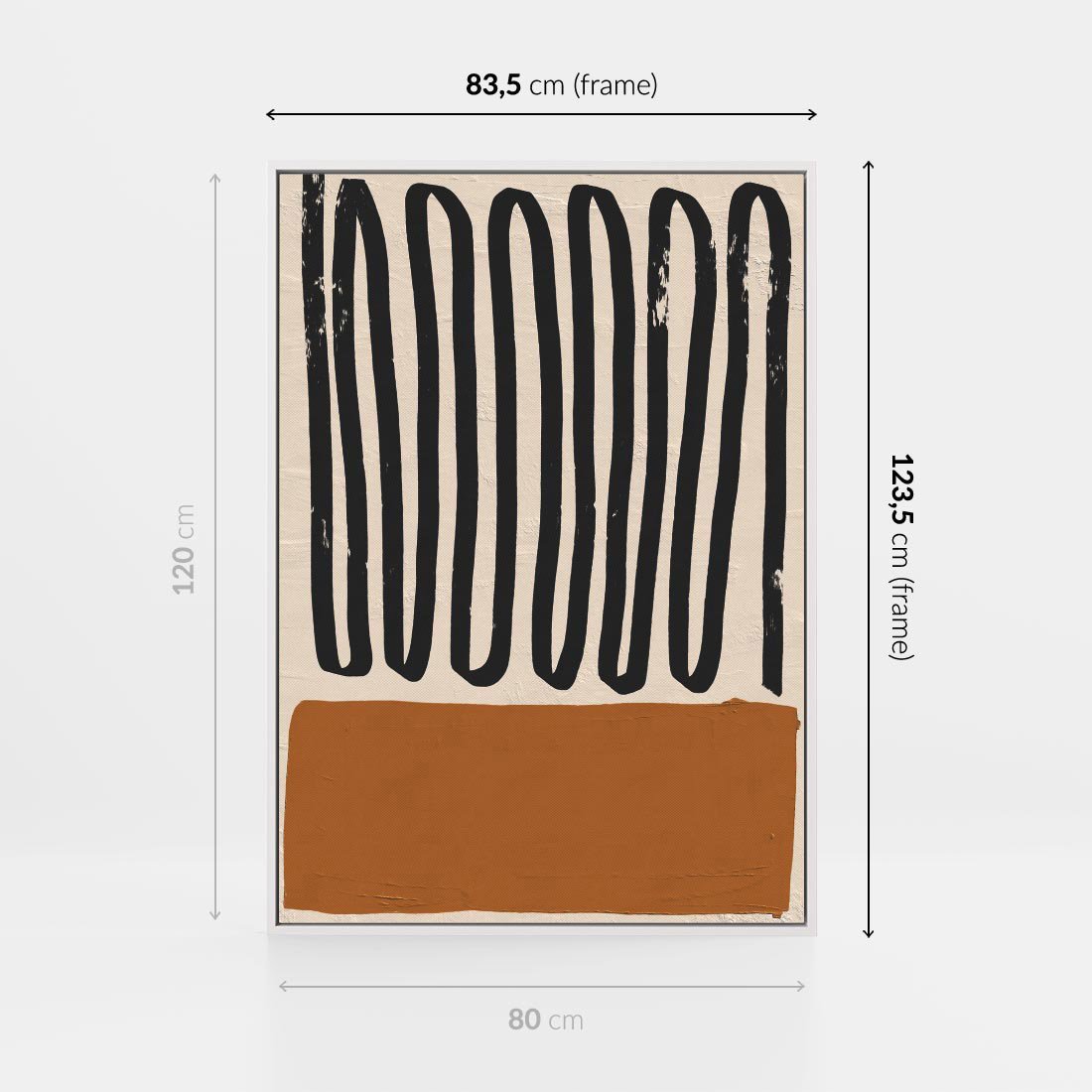Ten abstrakcyjny plakat w odcieniach brązu zachwyca wyrazistymi czarnymi falowanymi liniami, tworząc dynamiczną kompozycję. Idealny dodatek do nowoczesnych wnętrz.