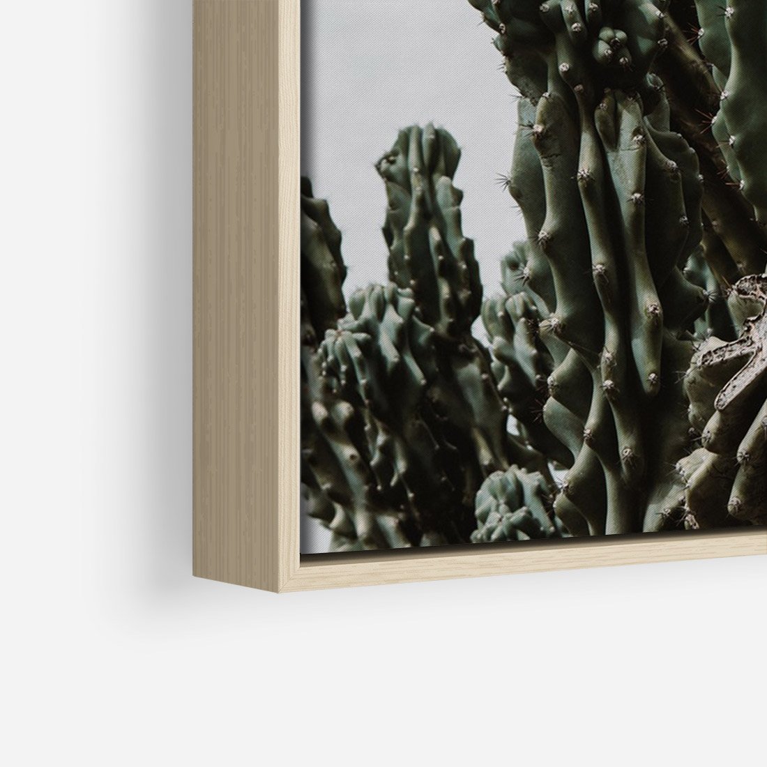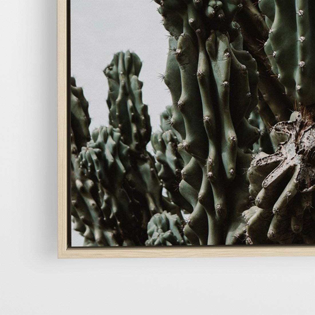 Obraz w ramie 80x120 - Boho oaza wśród kaktusów - kaktusy, pustynia - rama drewno