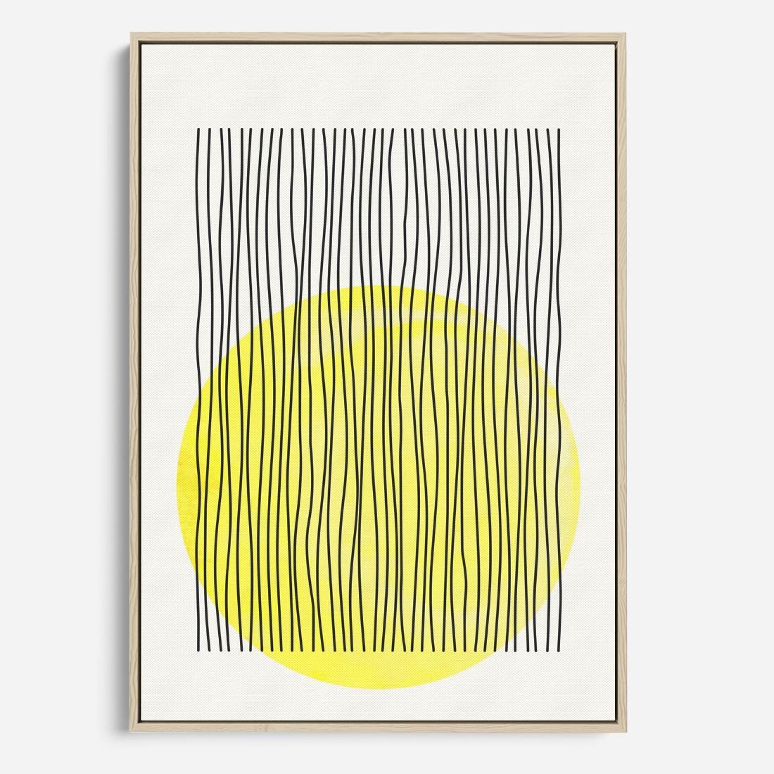 Obraz w ramie 80x120 - Ciepłe Przenikanie - geometria, żółte koło - rama drewno