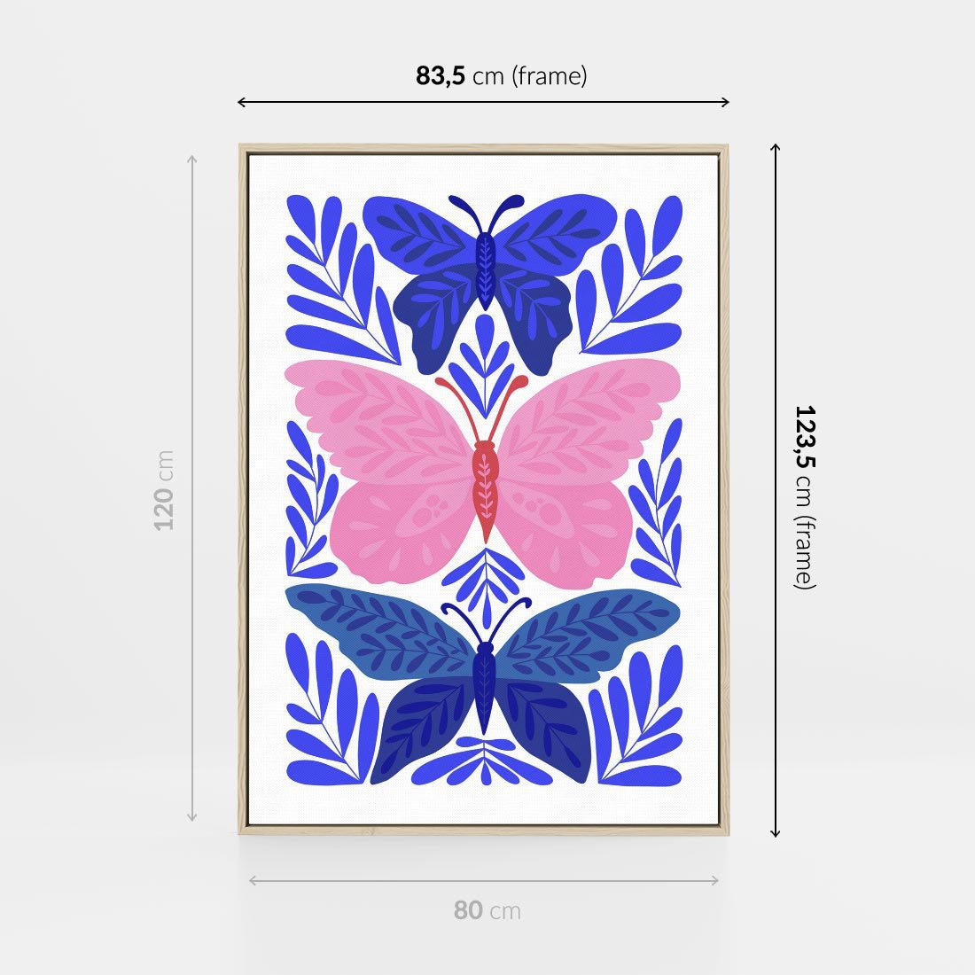 Obraz w ramie 80x120 - Delikatna Symfonia Natury - motyle, rośliny - rama drewno