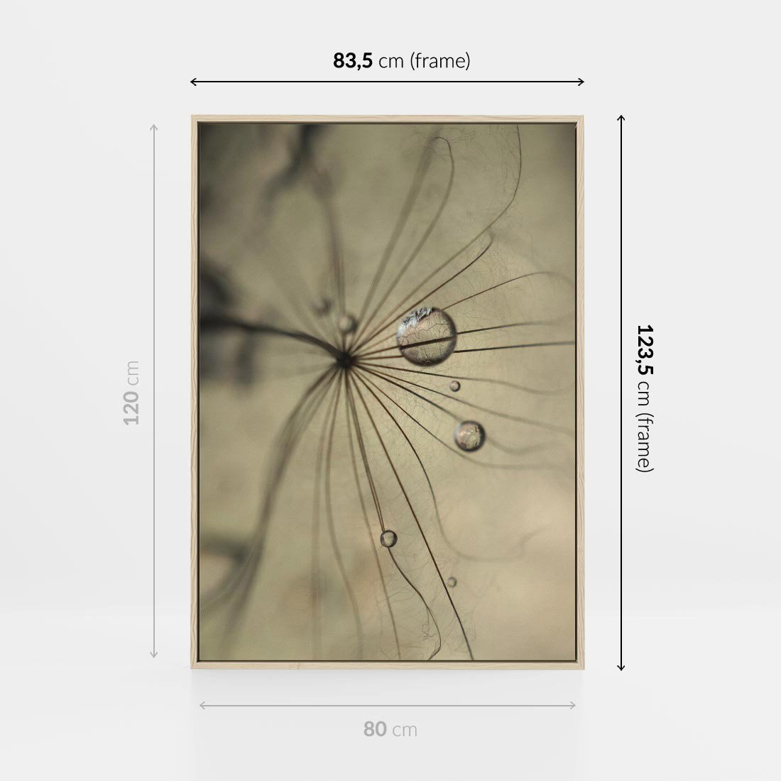 Obraz w ramie 80x120 - Delikatność dmuchawców - dmuchawce, krople - rama drewno