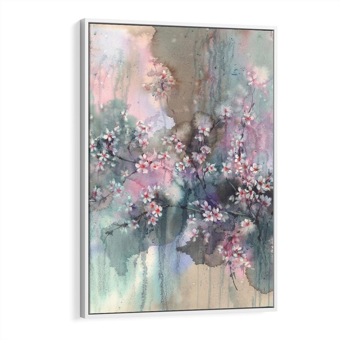 Obraz w ramie 80x120 - Efemeryczne Kwitnienie Drzew - akwarela, rozmyte pastelowe tłó - rama biała