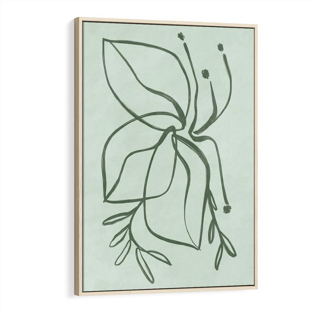 Obraz w ramie 80x120 - Energetyczne Odrodzenie Natury - abstrakcyjne delikatne zielone linie, podobne do gałęzi kwiatów - rama drewno