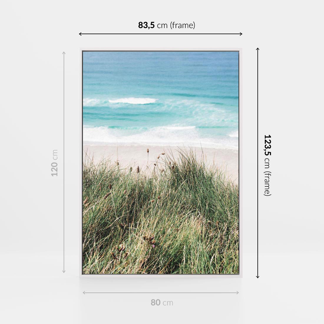 Obraz w ramie 80x120 - Harmonia Natury - widok z wydm, wydmy porośnięte trawami - rama biała