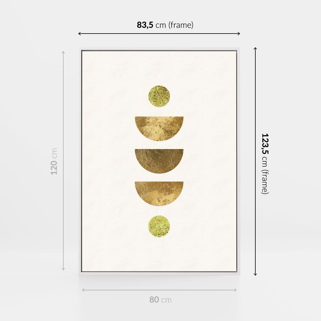 Obraz w ramie 80x120 - Harmonijne Odbicia - geometryczne złote kształty, tekstura - rama biała