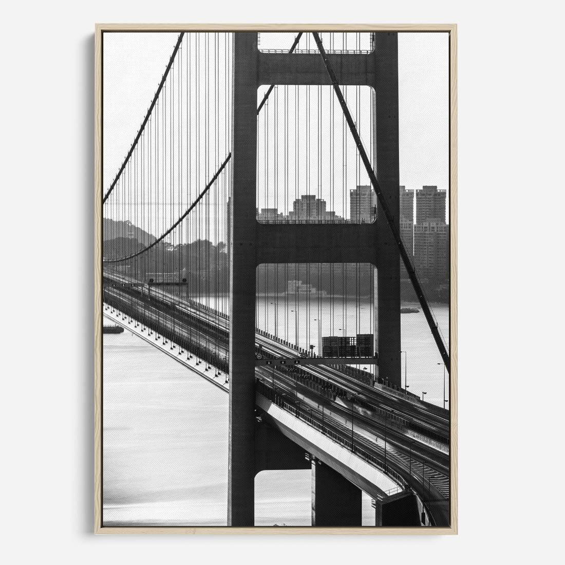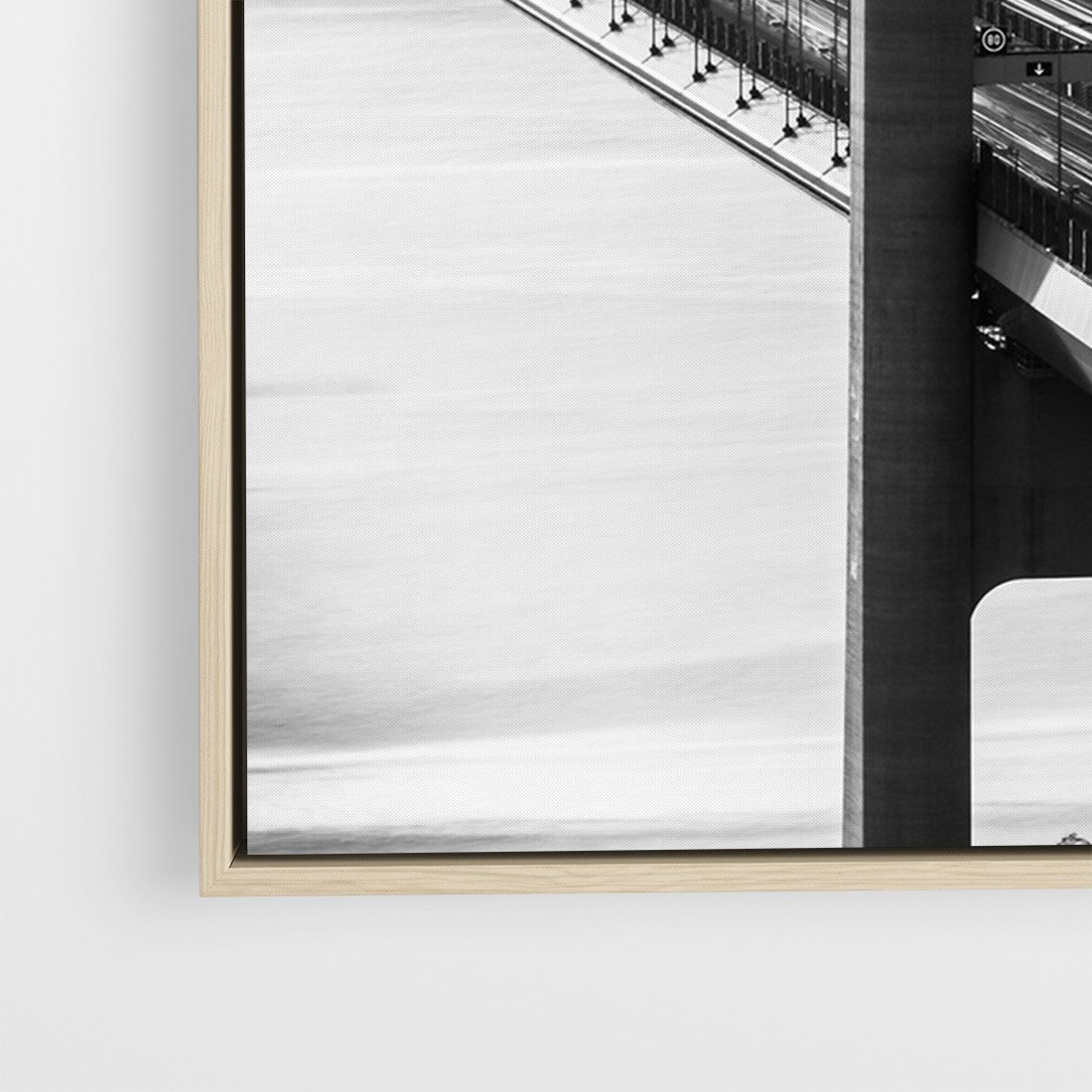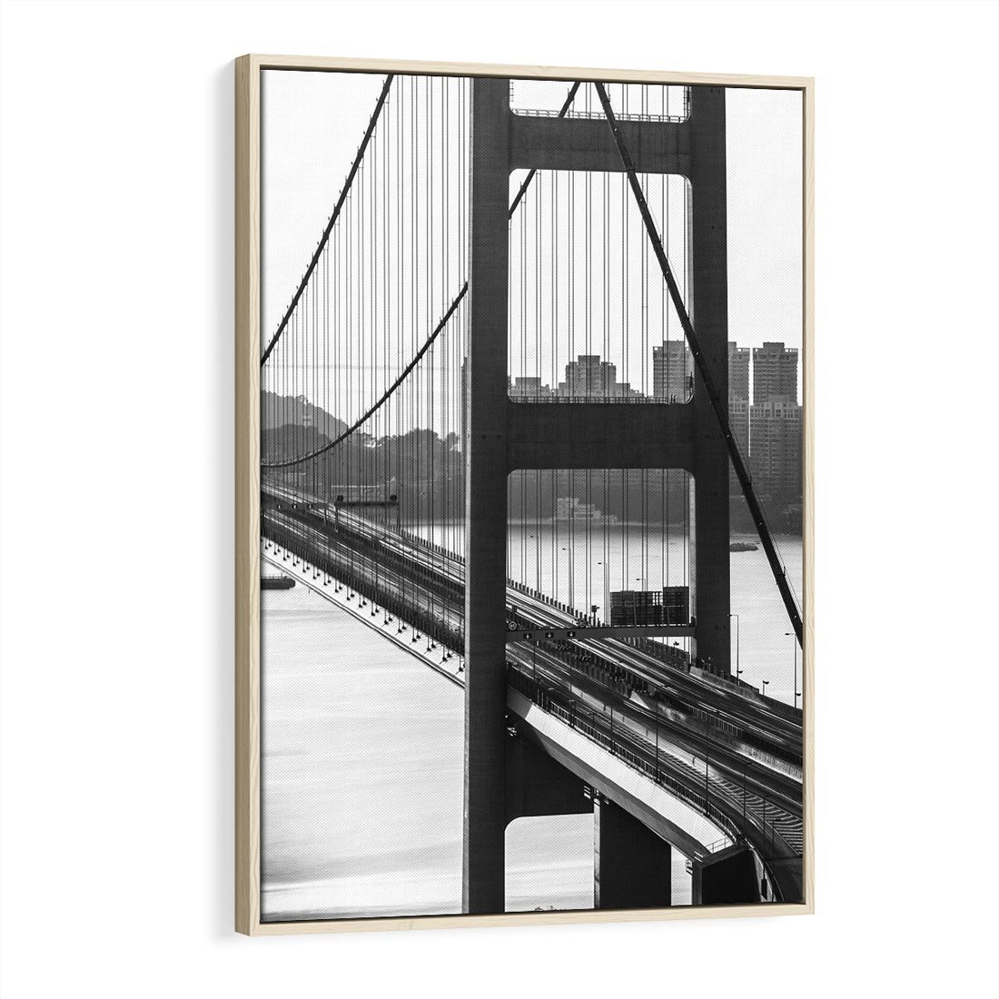 Obraz w ramie 80x120 - Ikona Miasta - most Nowy Jork, czarno biała fotografia - rama drewno