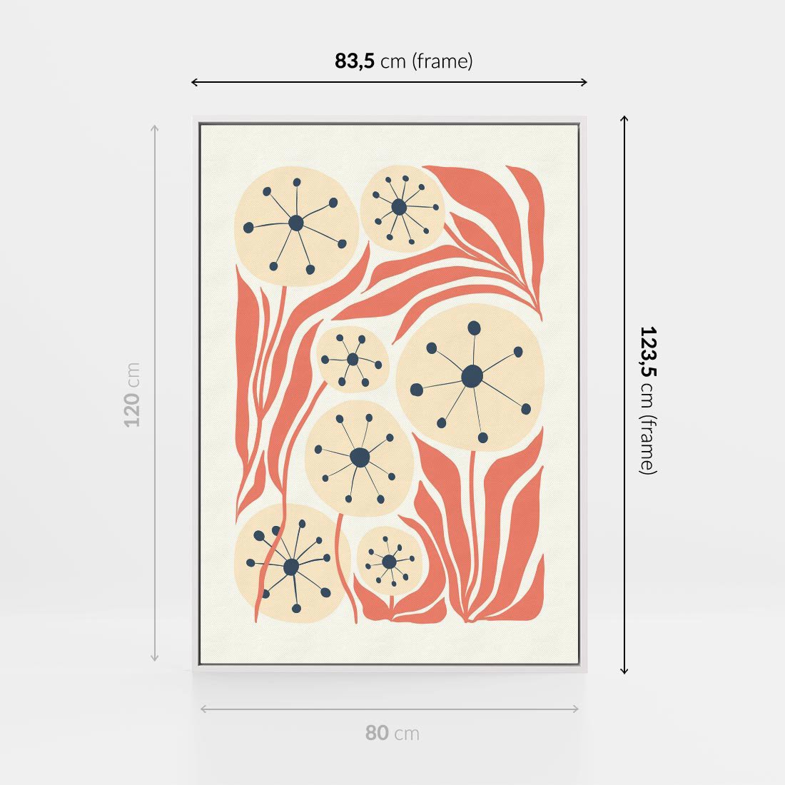 Ta sztuka przenosi nas w abstrakcyjny świat kwiatów i dmuchawców, zanurzając się w delikatnych pastelowych kolorach. Kompozycja tworzy magiczną podróż przez naturę, pełną piękna i harmonii.