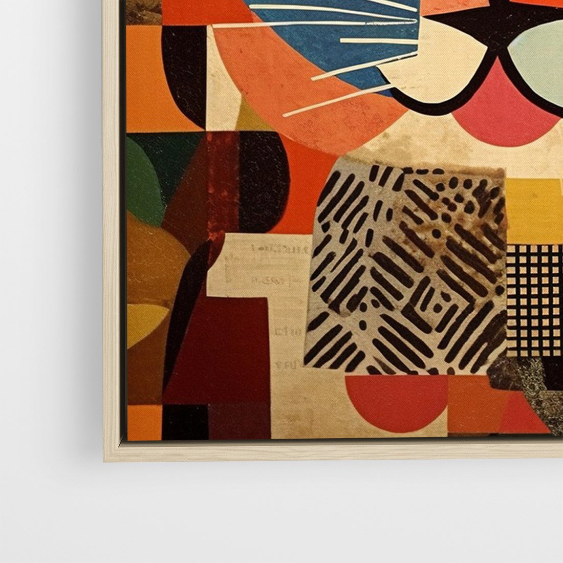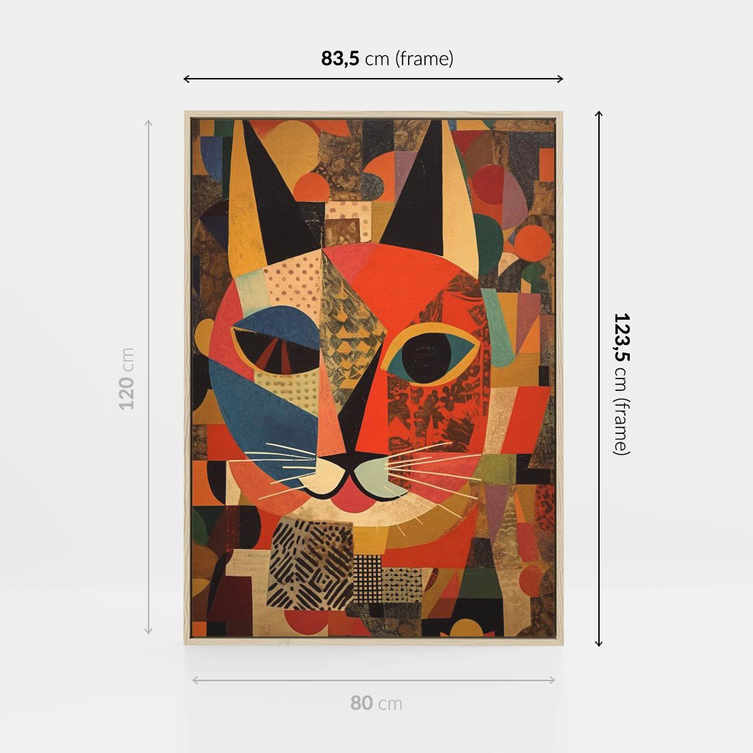 Obraz w ramie 80x120 - Impresje Nieznanych Odniesień - abstrakcyjny obraz olejny, kot - rama drewno