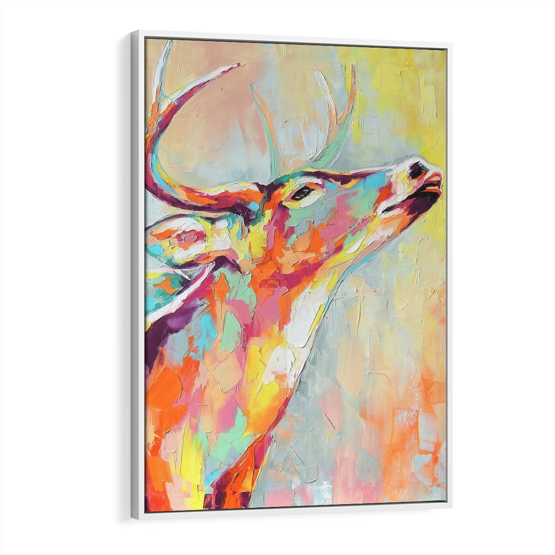 Obraz w ramie 80x120 - Impresje snów malarza - kolorowy olejny obraz, jeleń ryczący na rykowisku - rama biała