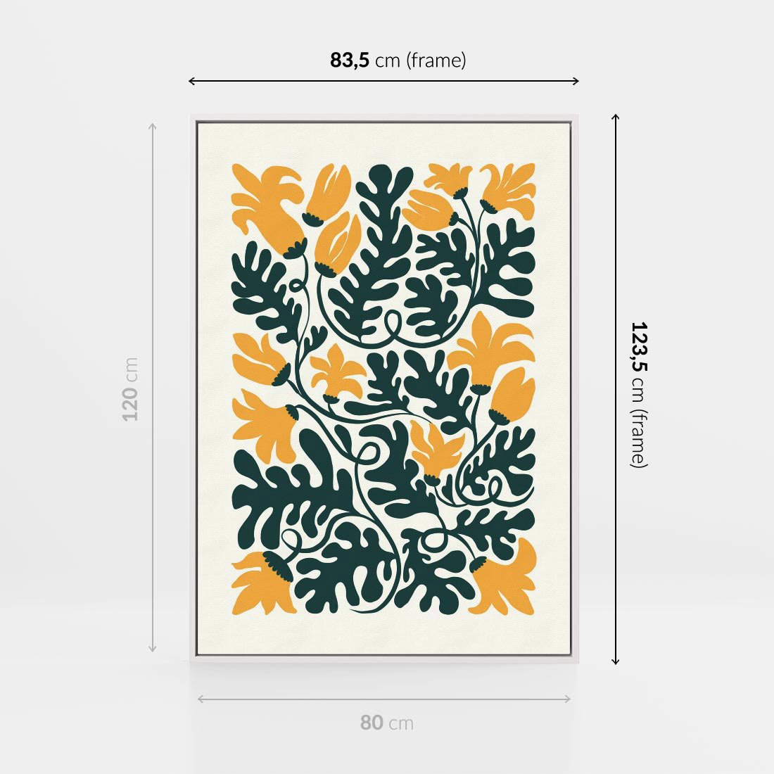 Obraz w ramie 80x120 - Impulsy Kreatywności - abstrakcyjne żółte kwiaty, kompozycja - rama biała