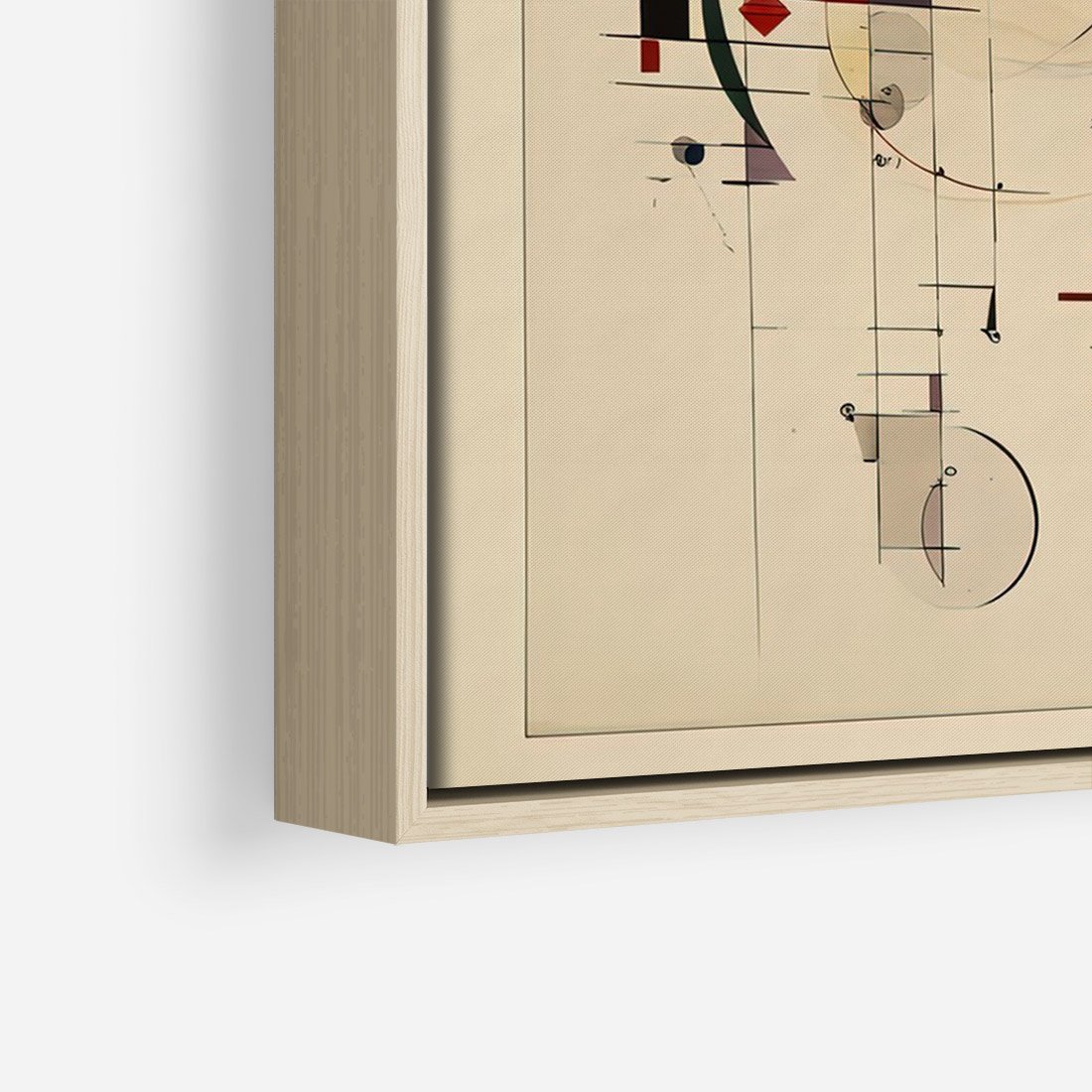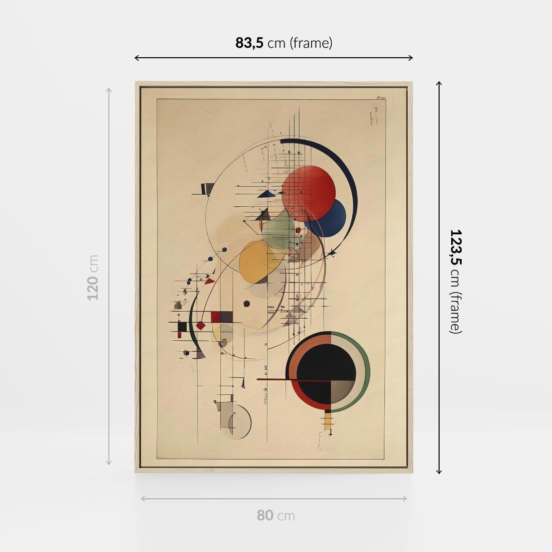 Ta abstrakcyjna geometryczna kompozycja, inspirowana stylem Wassily'ego Kandinsky'ego, używa kół i linii, aby tworzyć dynamiczną harmonię kształtów i kolorów. To wizualne doświadczenie przenosi widza w emocjonalną podróż przez abstrakcyjne światy.