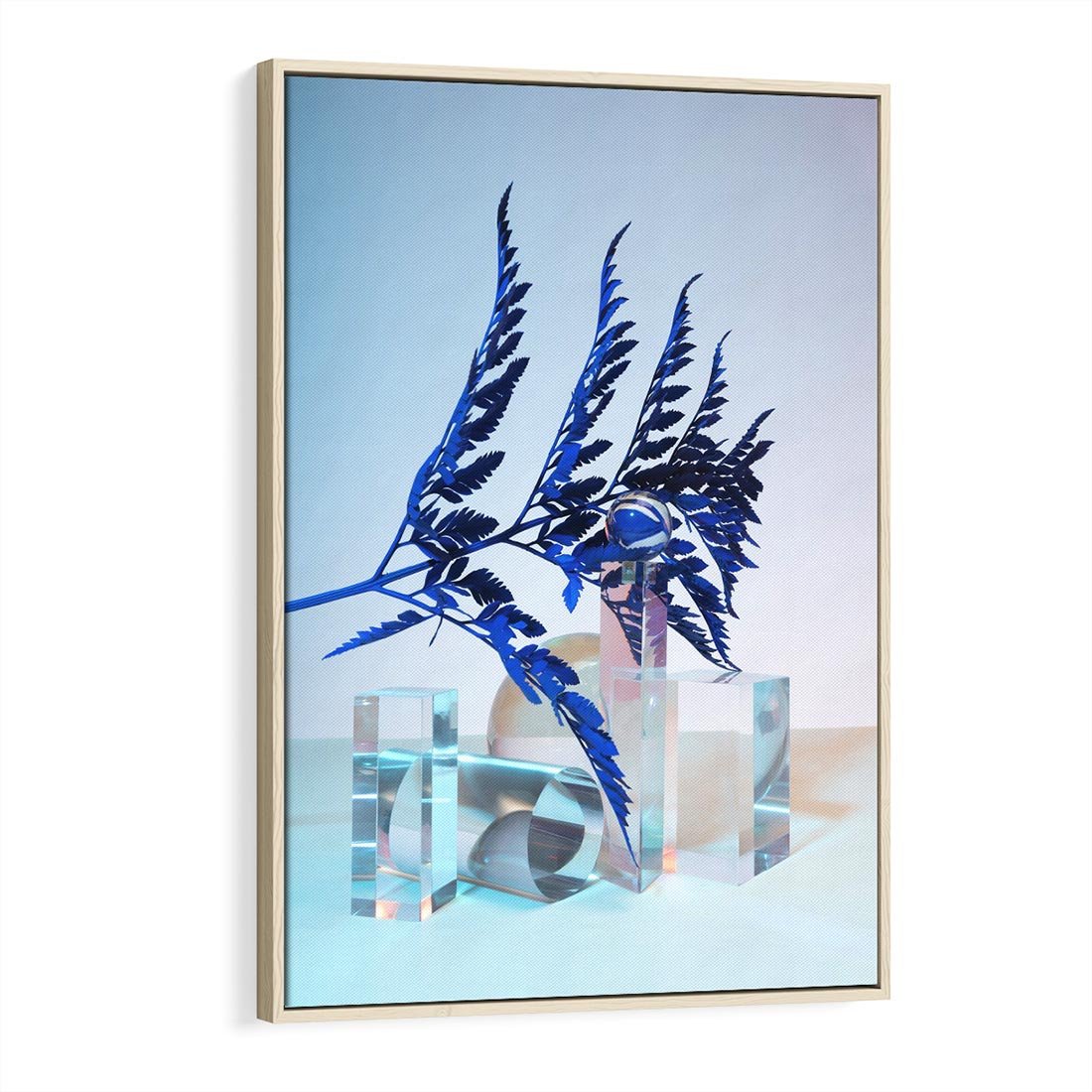 Obraz w ramie 80x120 - Intensywny Kolor Natury - liście, kobalt - rama drewno