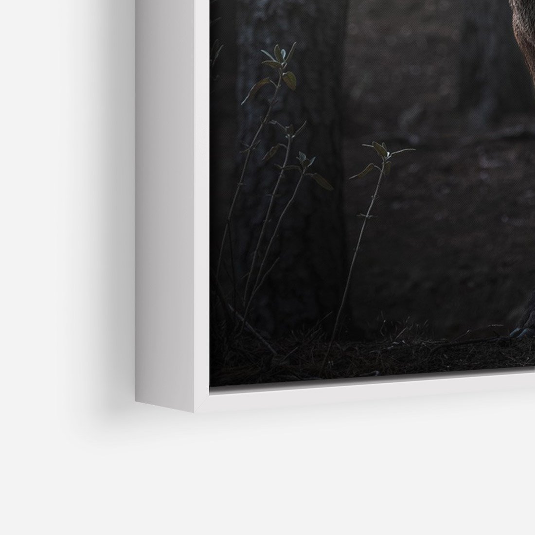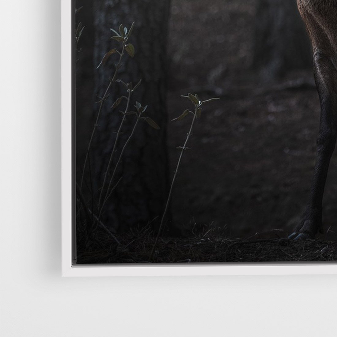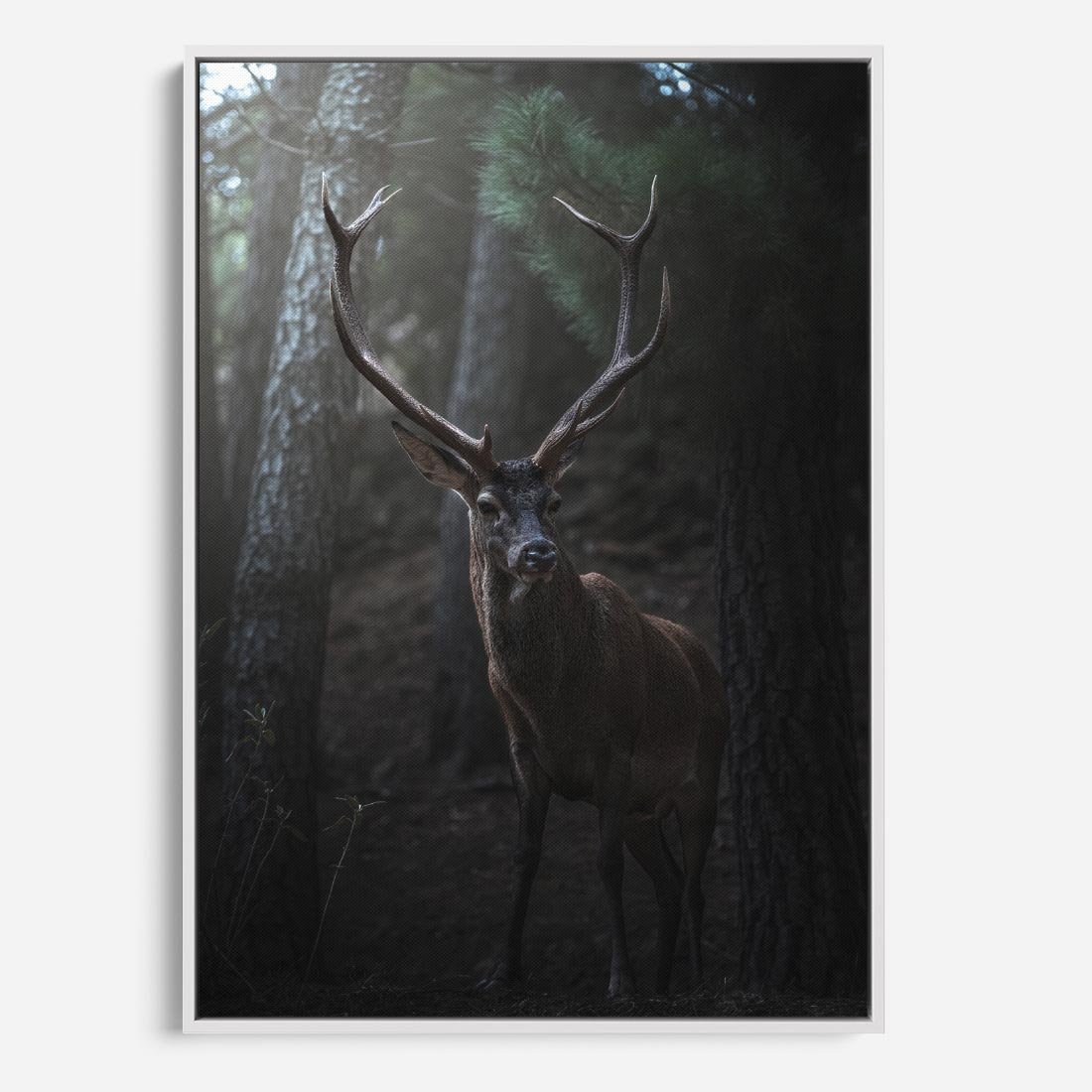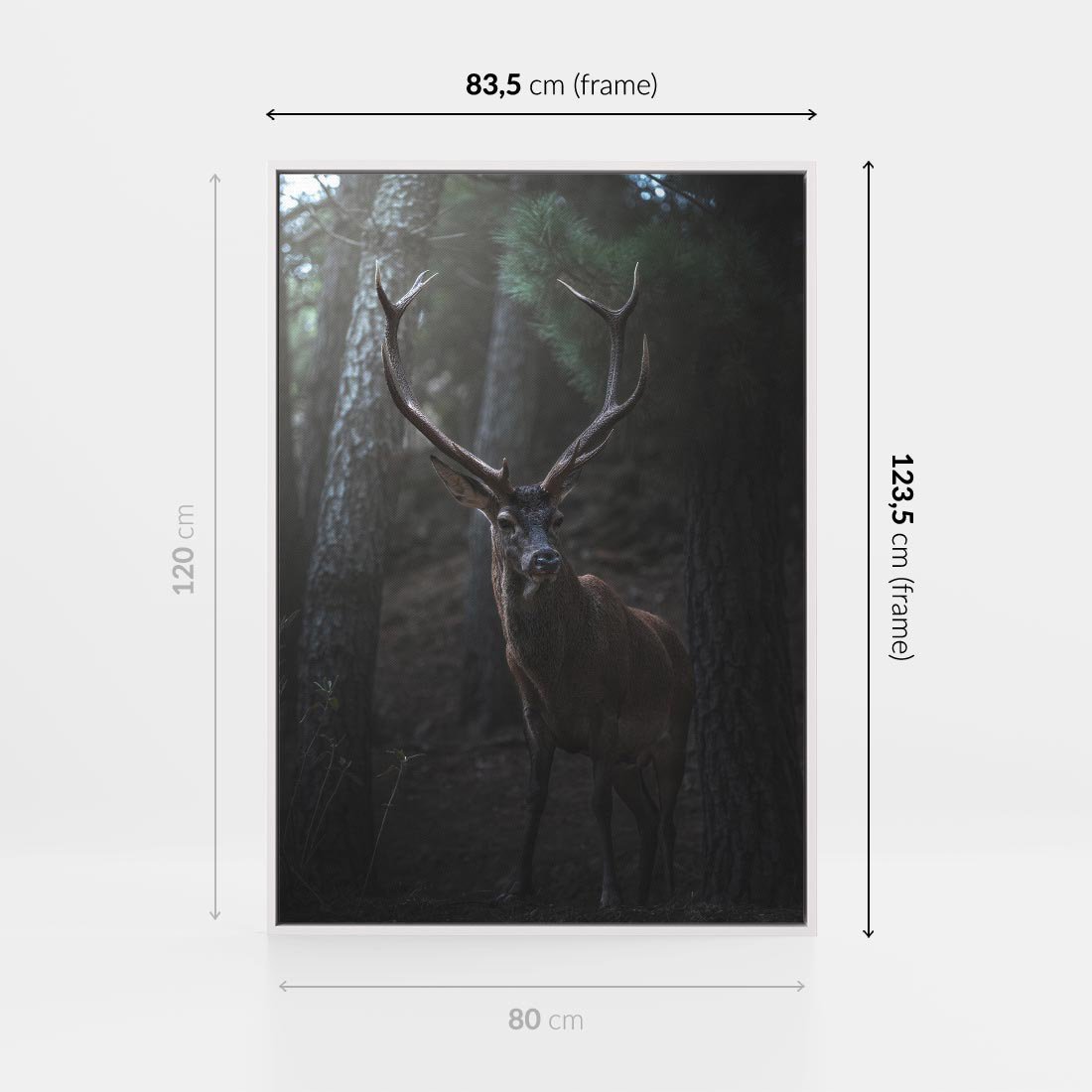 Obraz w ramie 80x120 - Jeleń wśród lasu - jeleń, las - rama biała