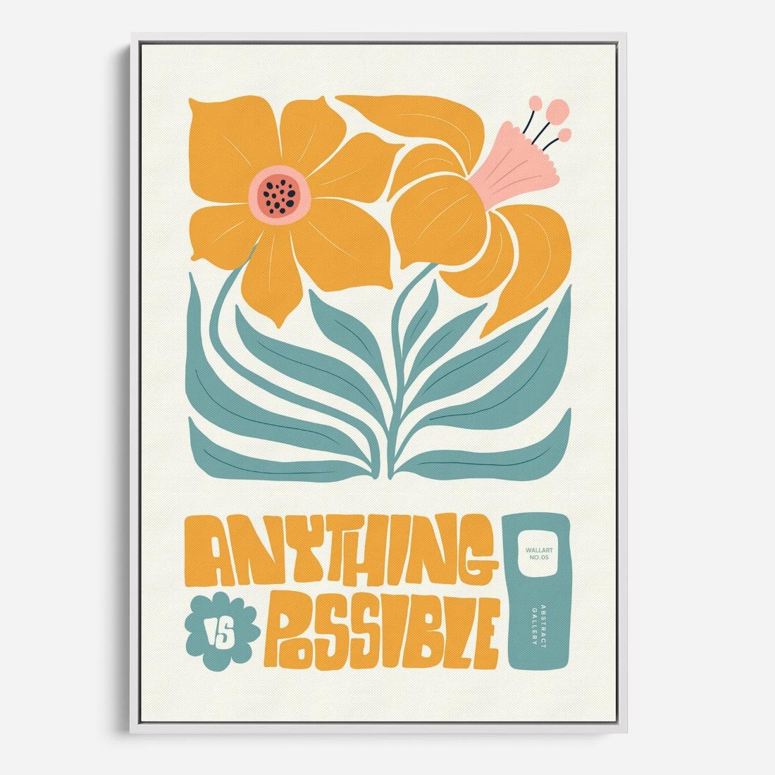 Ta nowoczesna sztuka przenosi nas w świat pastelowych marzeń, gdzie abstrakcyjne kwiaty tańczą z subtelnością. Wzbogacona wyrazistą typografią, tworzy kompozycję pełną piękna i wyobraźni.