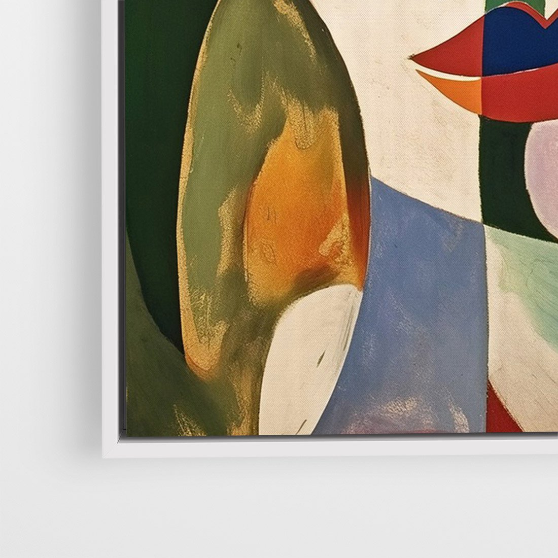 Ten abstrakcyjny obraz olejny przedstawia twarz kobiety w stylu nawiązującym do Picassa. Żywe i ekspresyjne kolory tworzą dynamiczną kompozycję, ukazującą emocje i indywidualność. To unikalne dzieło sztuki wyróżni się w każdym wnętrzu.