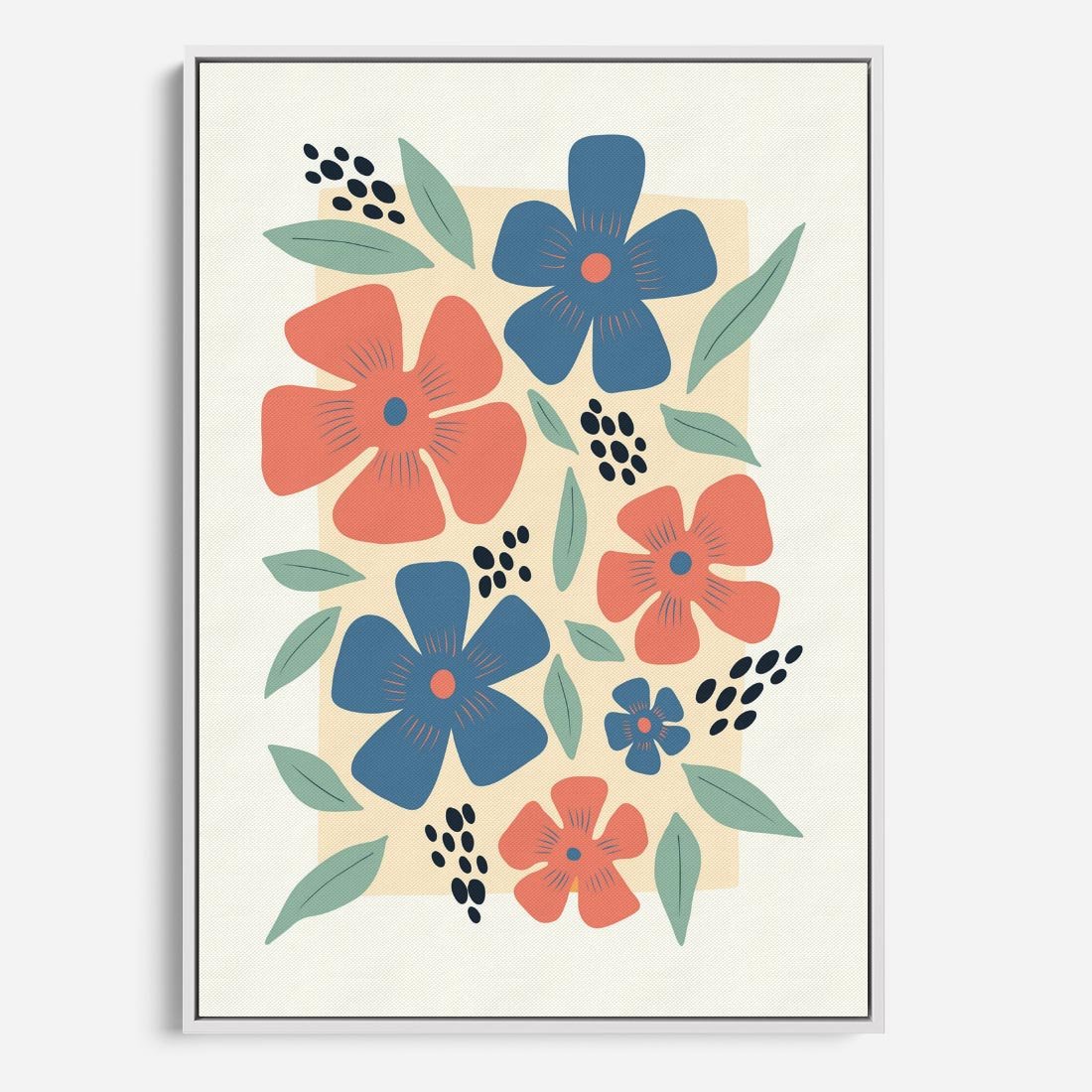 Ten minimalistyczny plakat przedstawia pastelowe kwiaty w prostej i harmonijnej kompozycji. To obraz, który emanuje spokojem i subtelnym pięknem natury. Idealny sposób na wprowadzenie delikatnych kwiatowych akcentów do wnętrza, zachowując jednocześnie estetykę minimalistycznego designu.