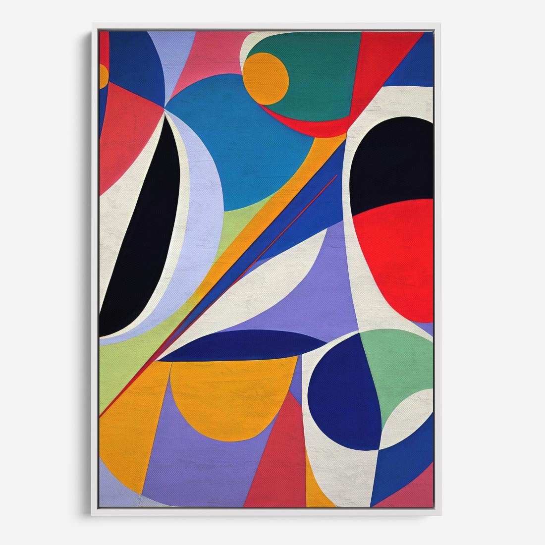 Obraz w ramie 80x120 - Kolorowe Przesunięcia Kształtów - abstrakcyjny obraz olejny, żywe kolory - rama biała