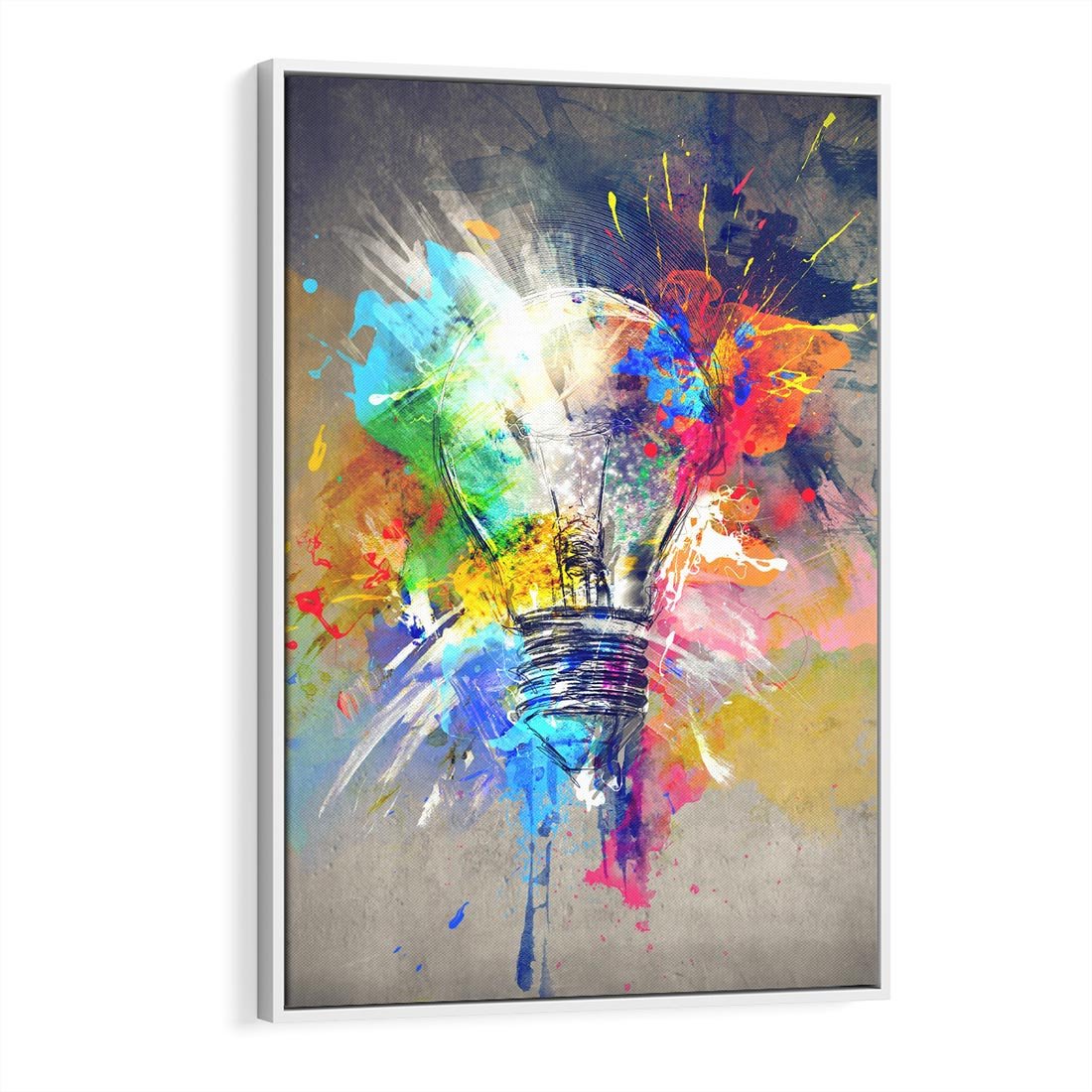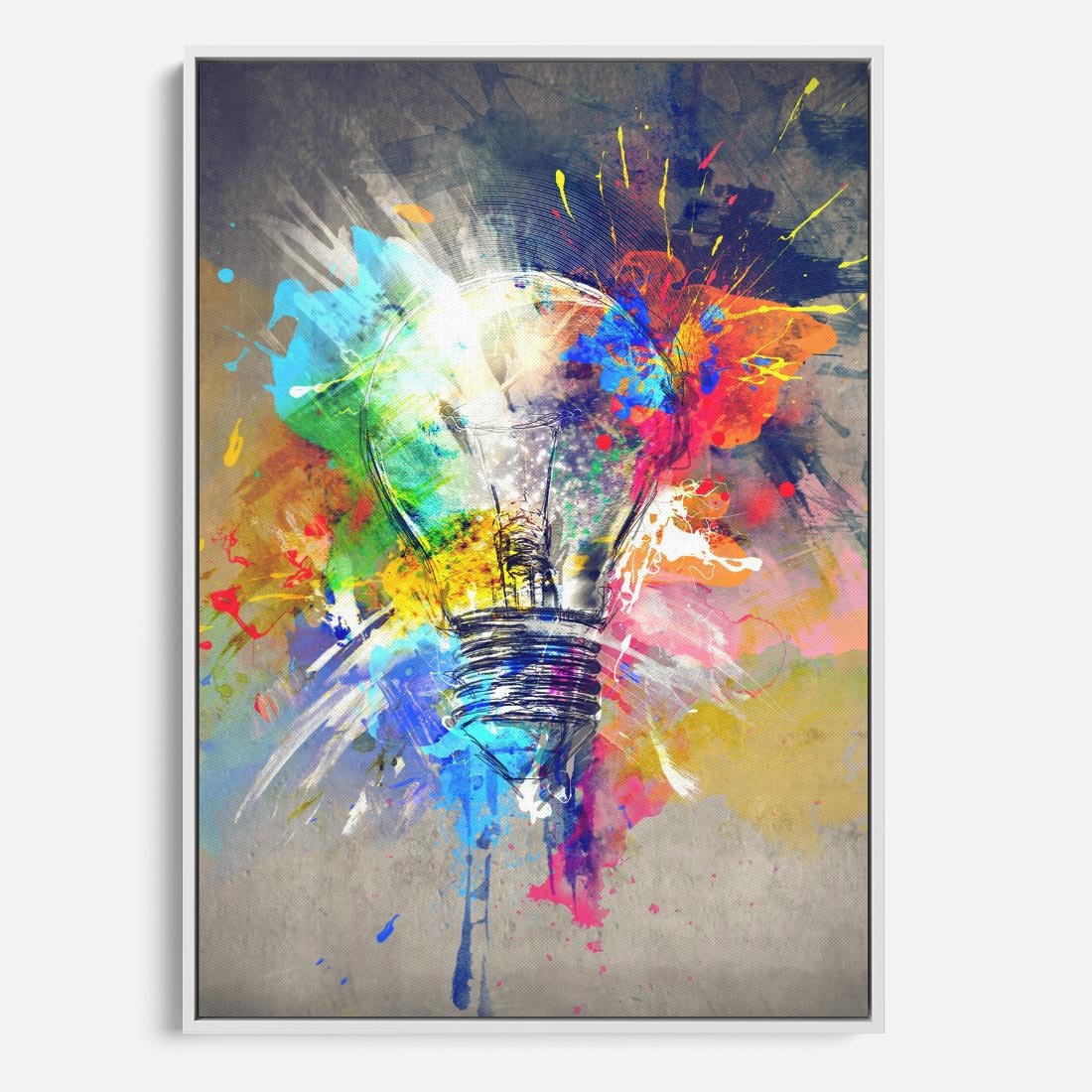 Obraz w ramie 80x120 - Kolory Kreatywnej Koncepcji - abstrakcyjna grafika, szkic żarówki - rama biała
