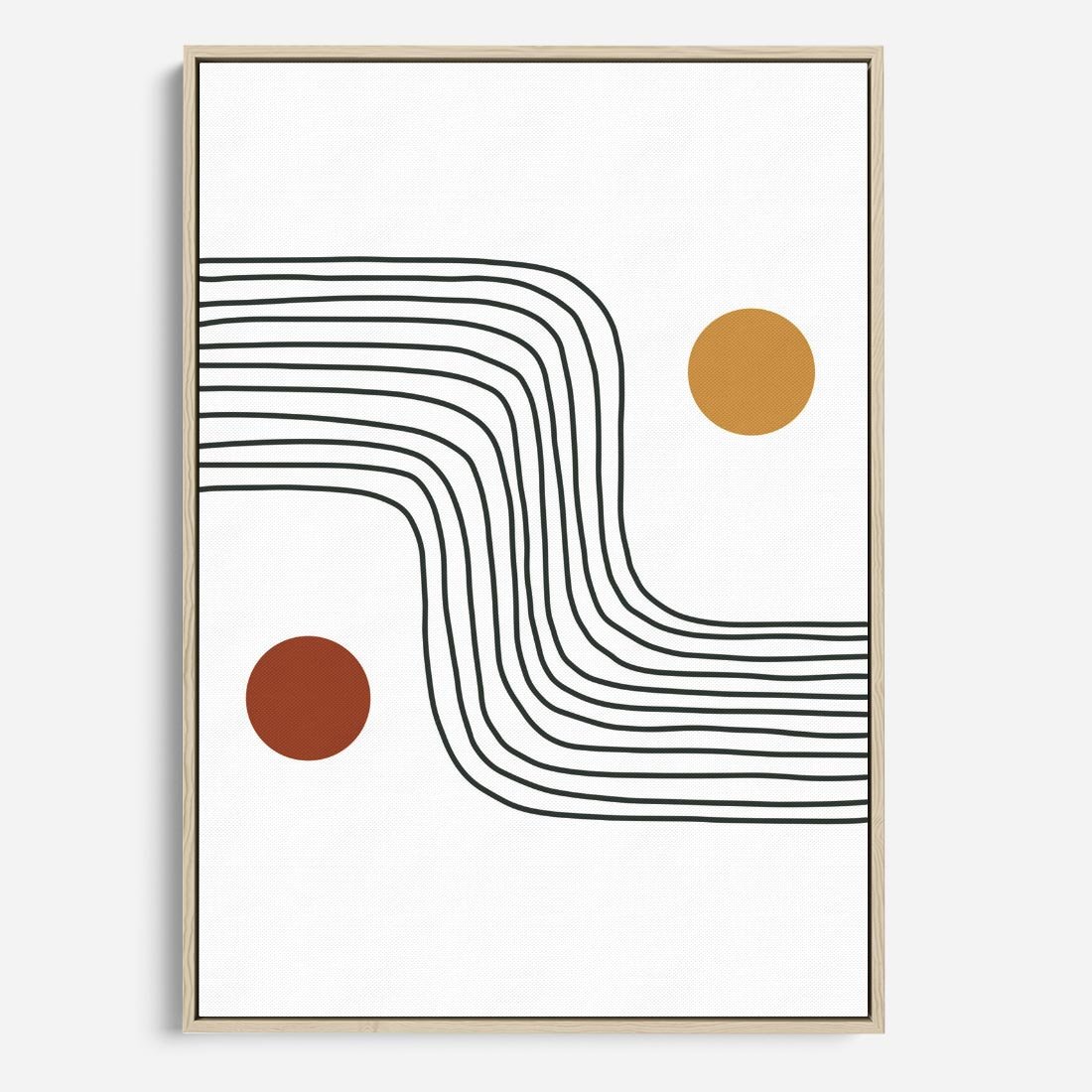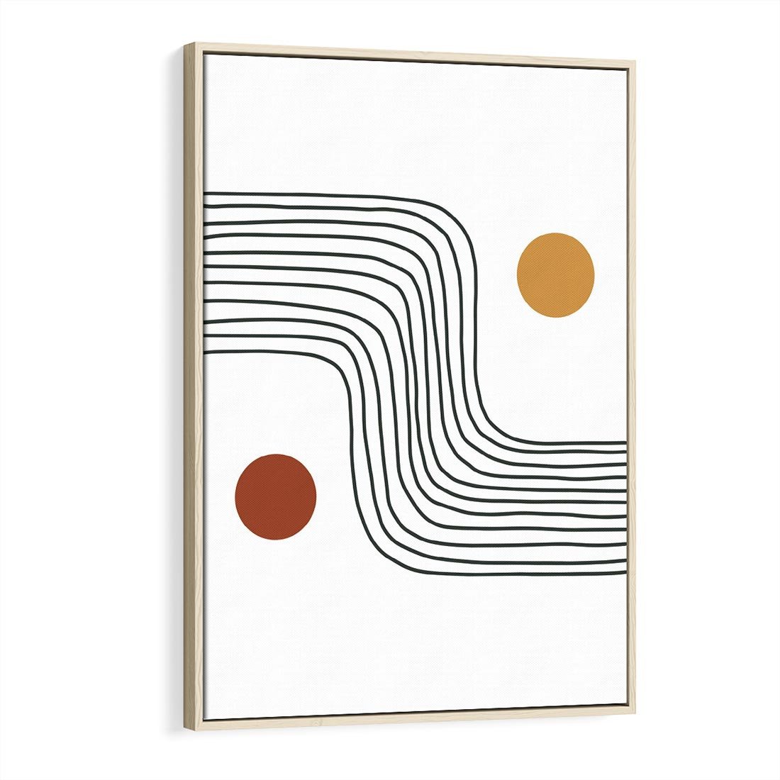 Ta minimalistyczna sztuka mid century wyróżnia się nieregularnymi liniami i geometrycznymi kołami, tworząc unikalną kompozycję. Wprowadź subtelny urok do swojego wnętrza, wyrażając równowagę i prostotę z nutą artystycznego ducha.